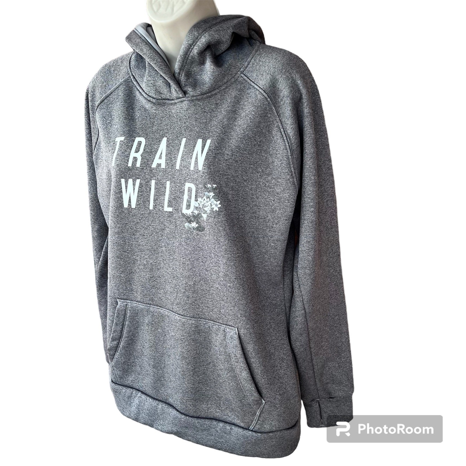 The North Face Graphic Print Hoodie Sweatshirt Gray Heather Womens L Train Wild