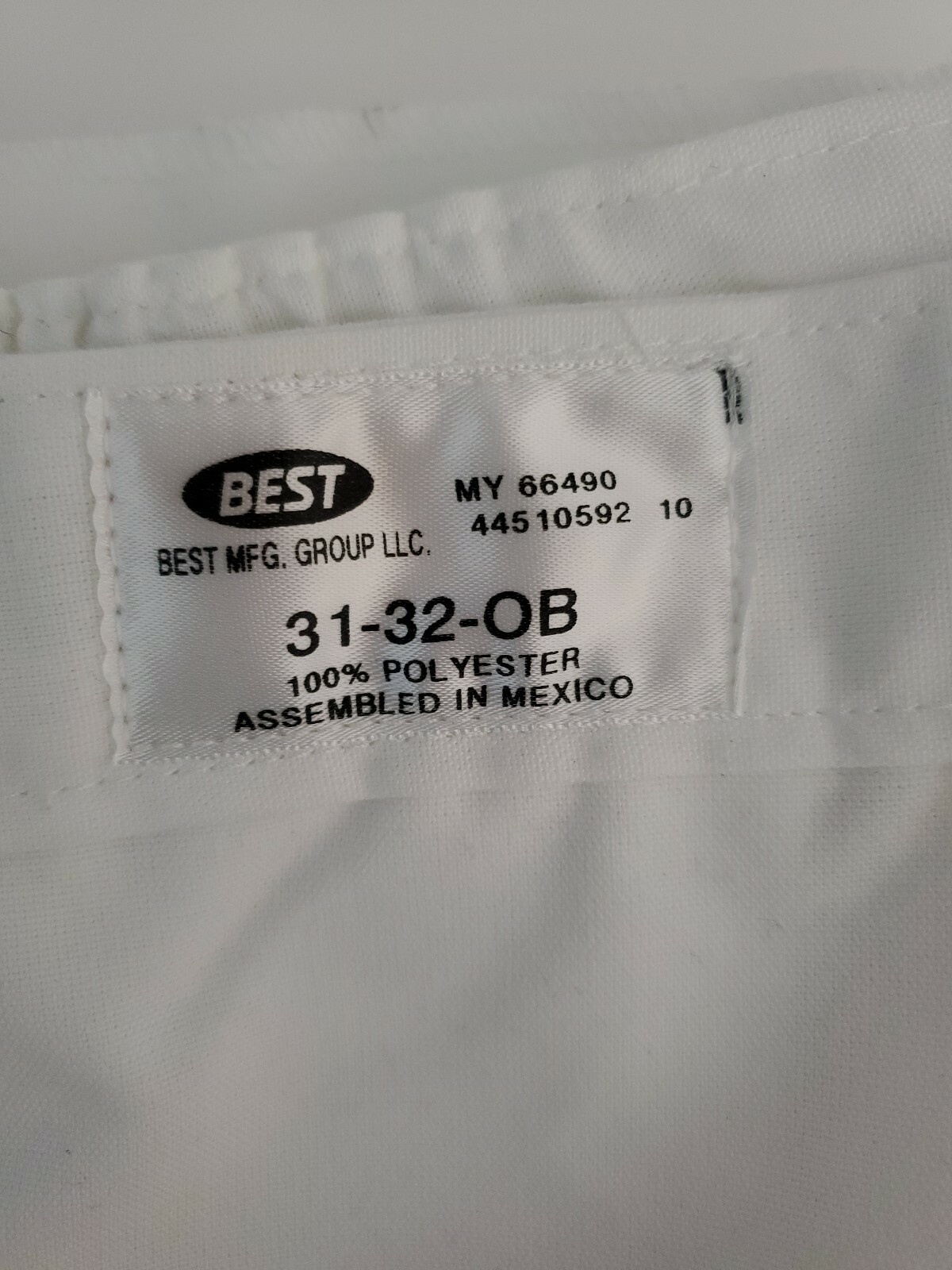 Hospitality Hotel Chef Pants White Unisex Waist 31-32 OB Zipper Flat Front