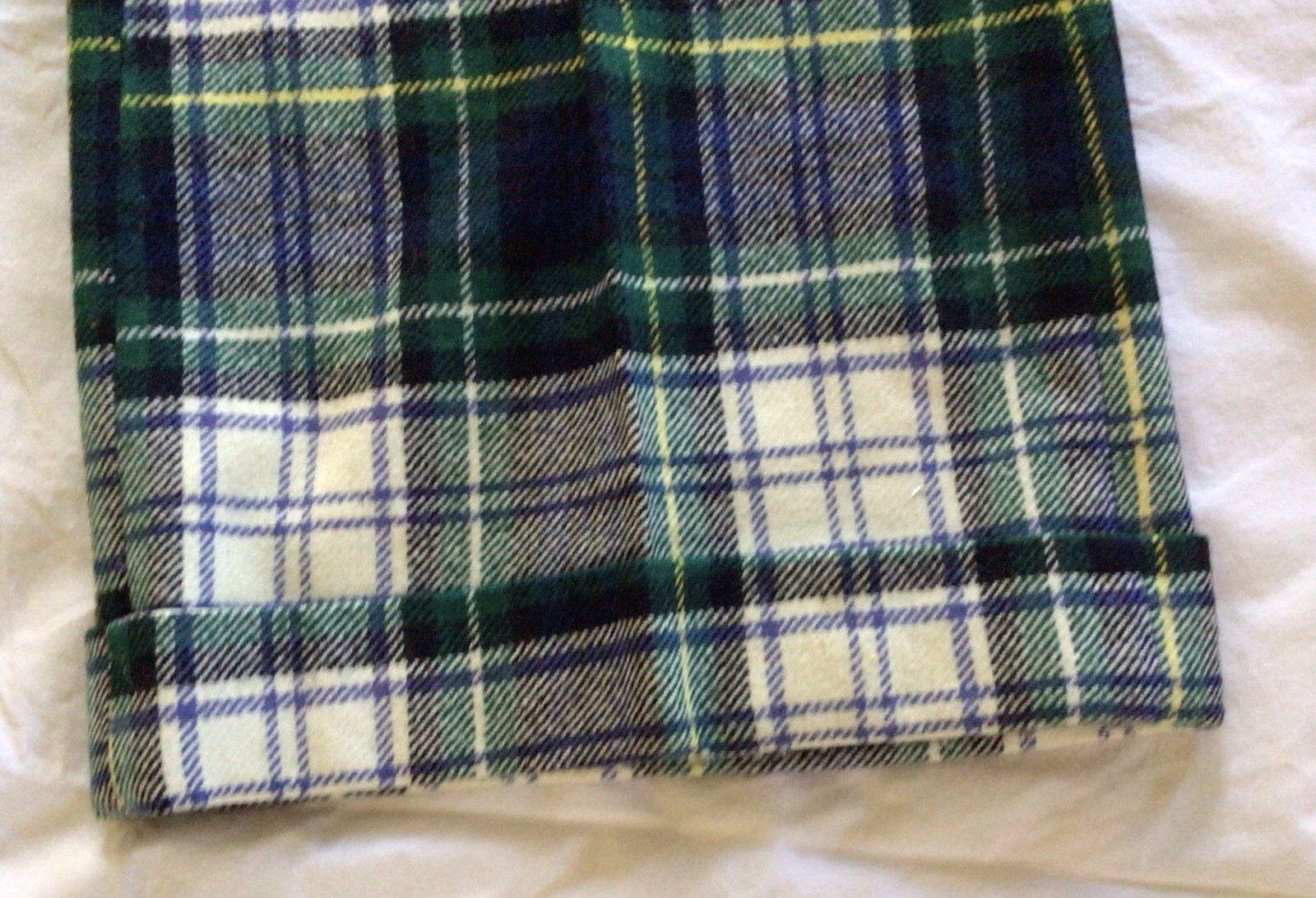 Vintage 70 s Mens W34 L31 Blue Tartan Plaid Wool Cuffed Flare Bell Bottom Pants