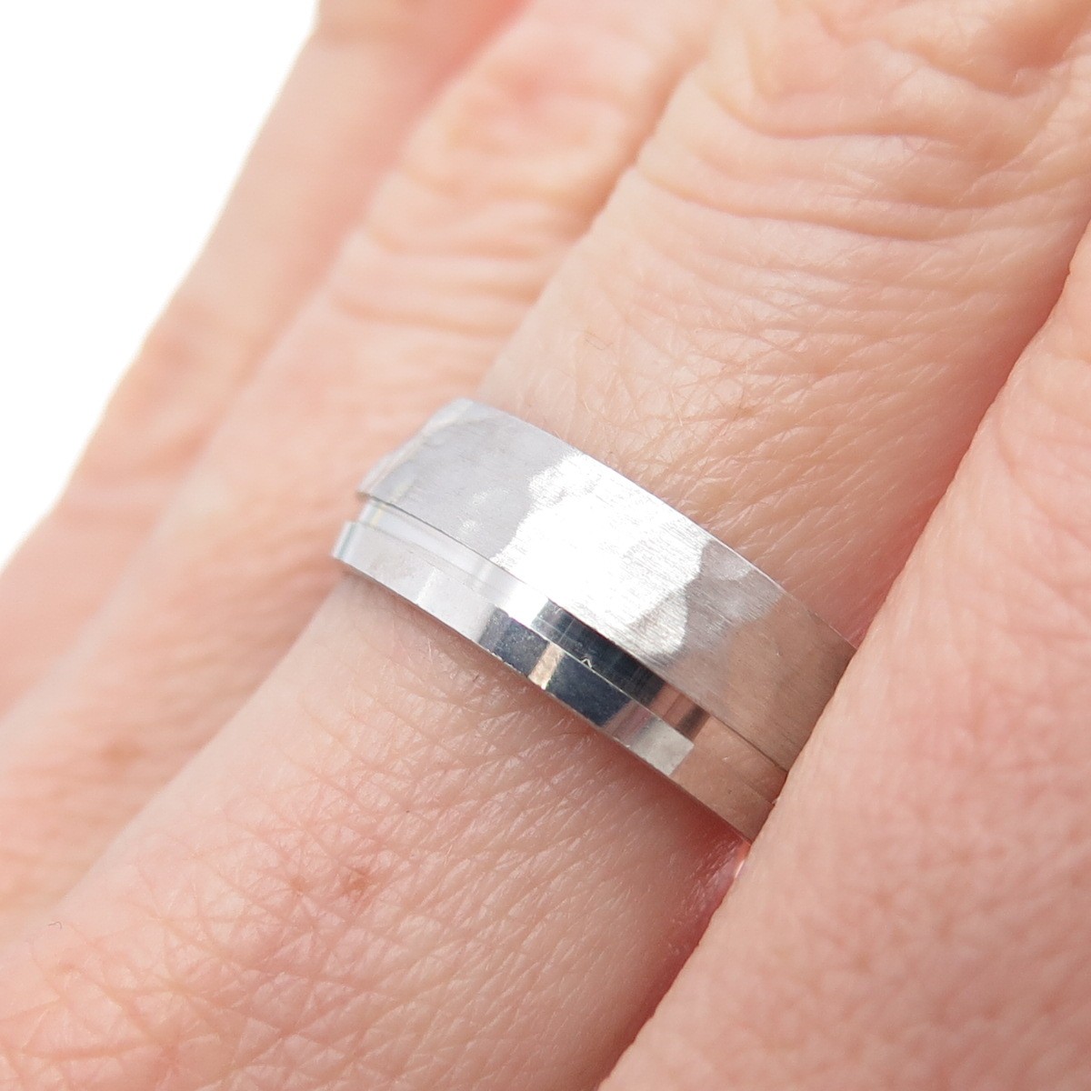925 Sterling Silver Hammered Band Ring Size 8.25