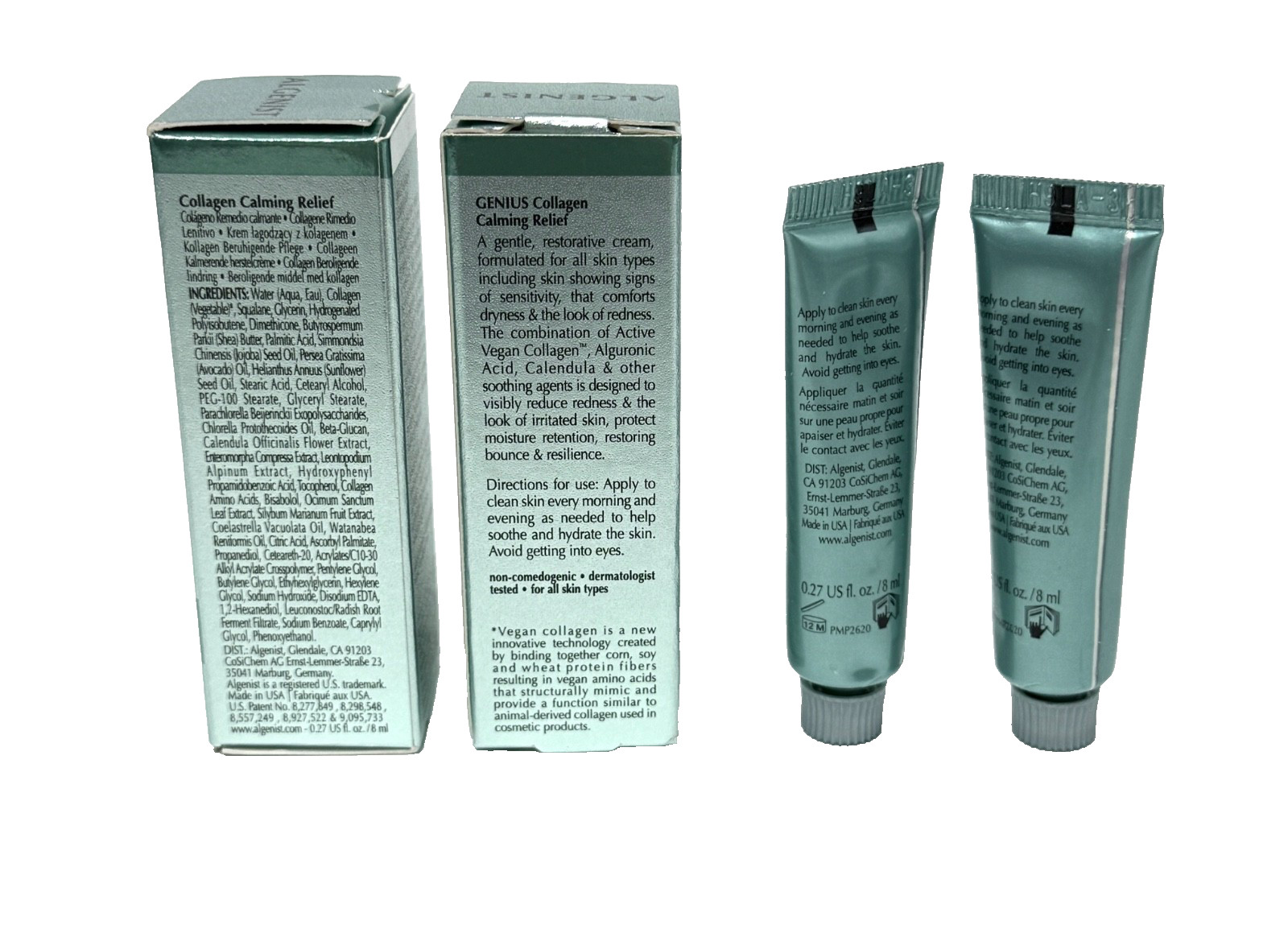ALGENIST Genius COLLAGEN Calming Relief LOT 2 x .27 OzTravel NEW wBOX FREE SHIP