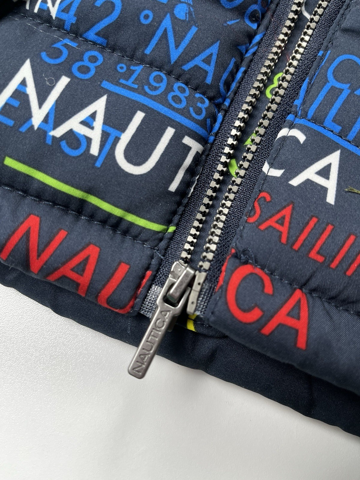 как выглядит Infant 3-6 Month Nautica Polyester Filled Nautical Print Navy Vest EUC фото