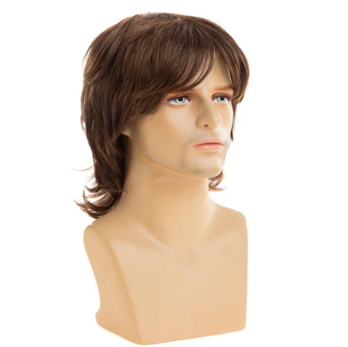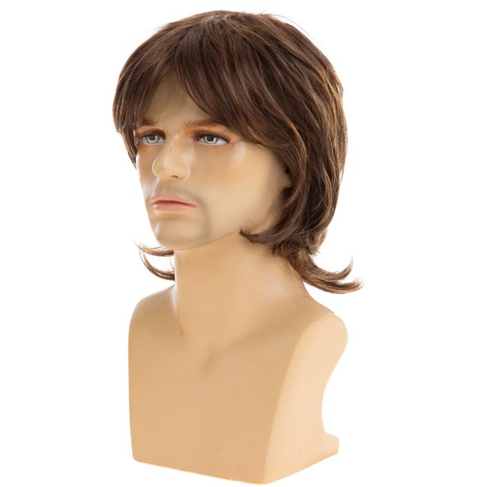 Mens Brown Blonde Fluffy Wavy Layered Wig Cosplay Rocker Party Christmas Gifts