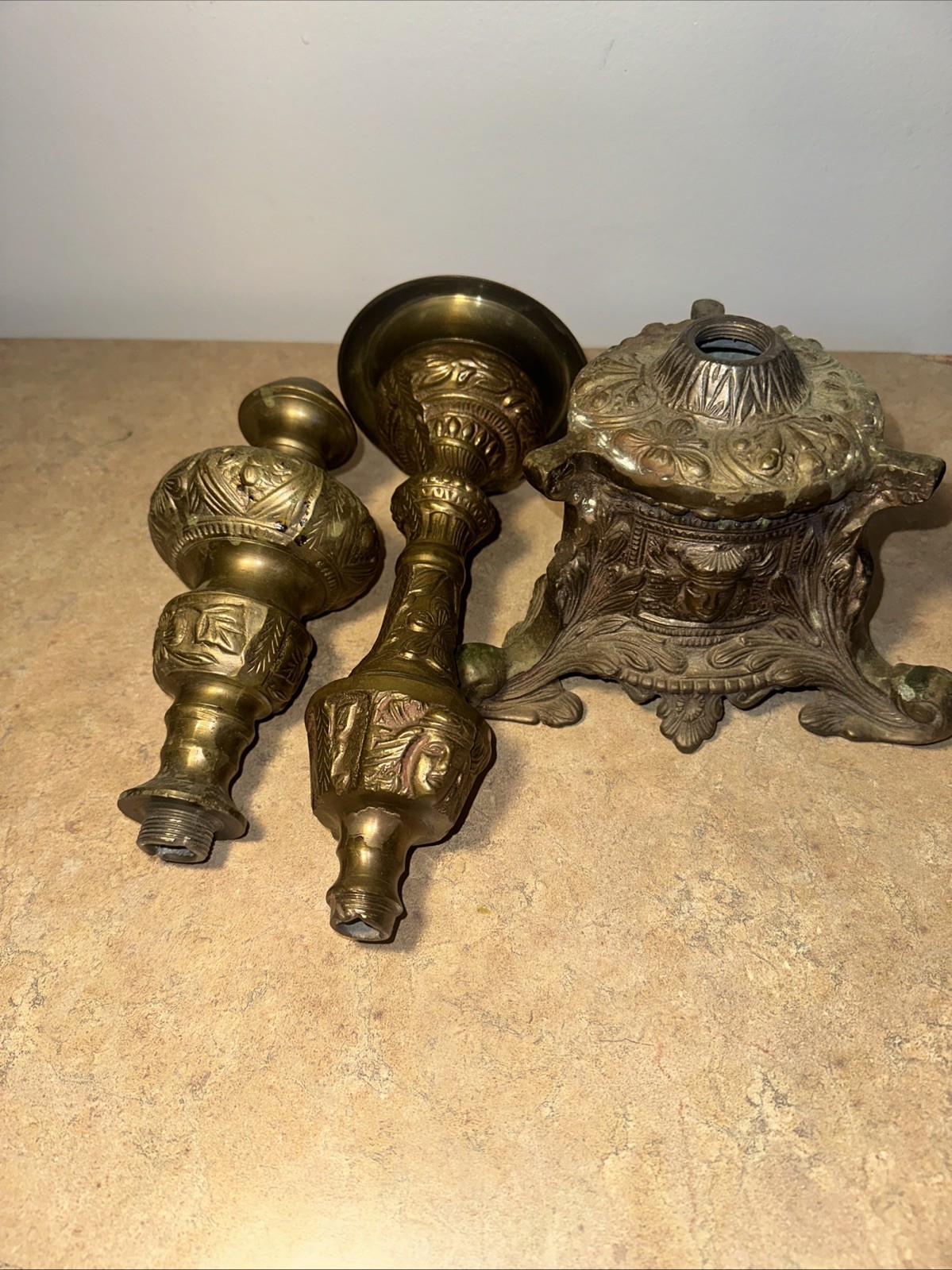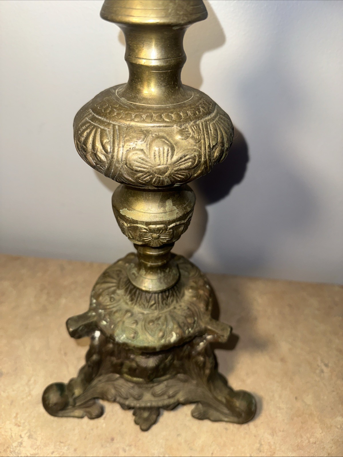Antique Brass Church Altar Candlestick Heads, Floral 24 Heavy