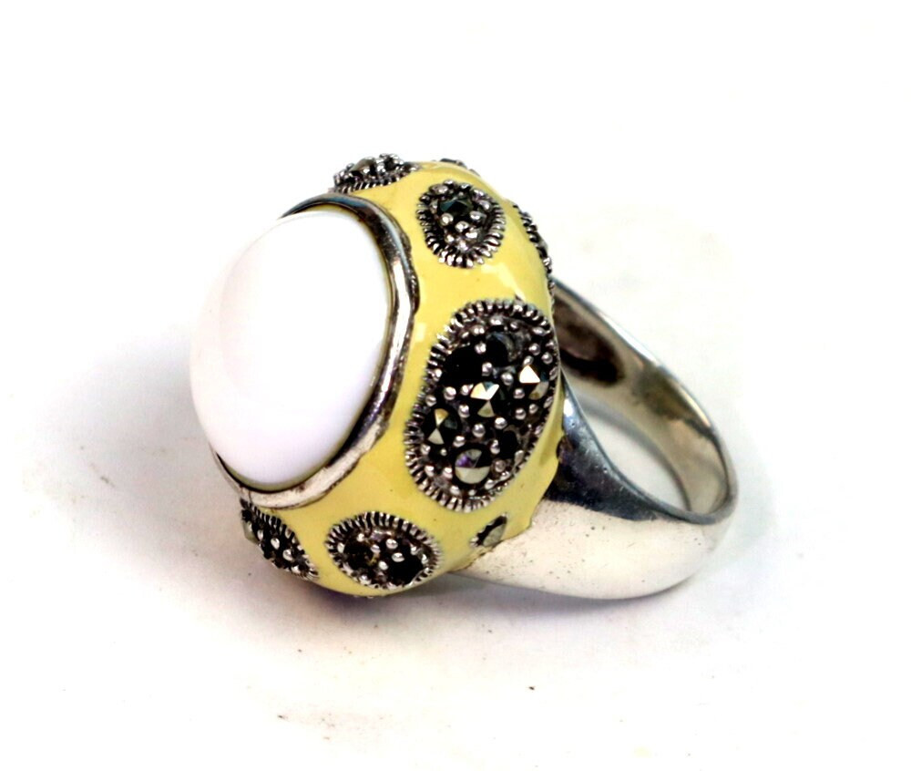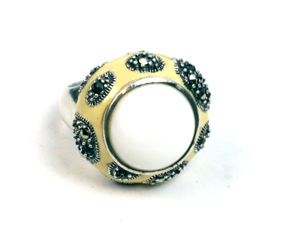 как выглядит Finest Natural Clear White Howlite .925 Sterling Silver Ring 8.5 фото