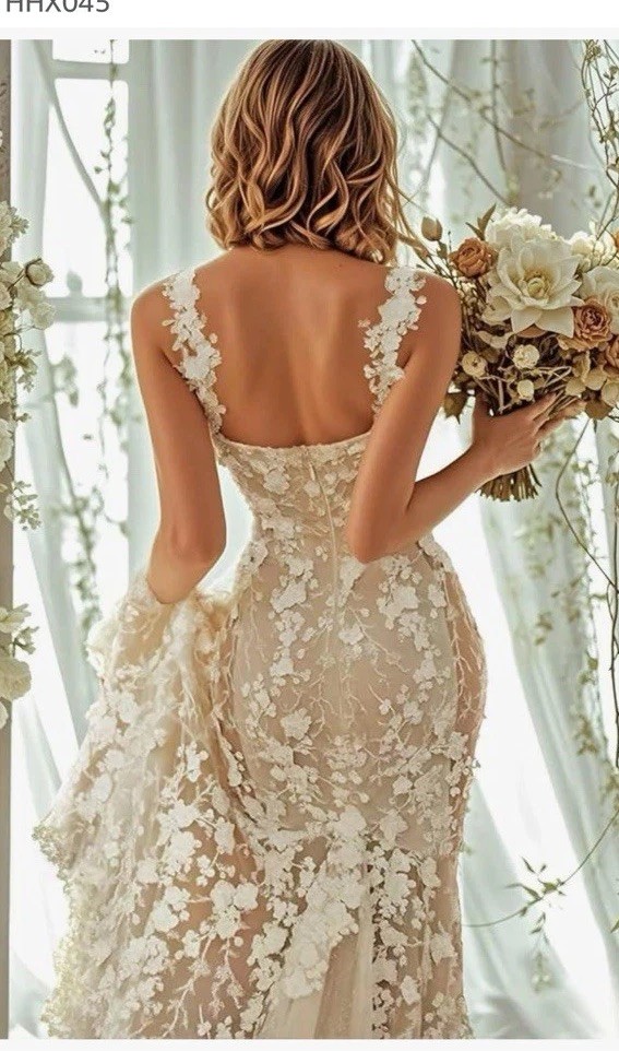 Elegant Floral White Wedding Gown Dress Size 4 NWOT Never Worn No Tags