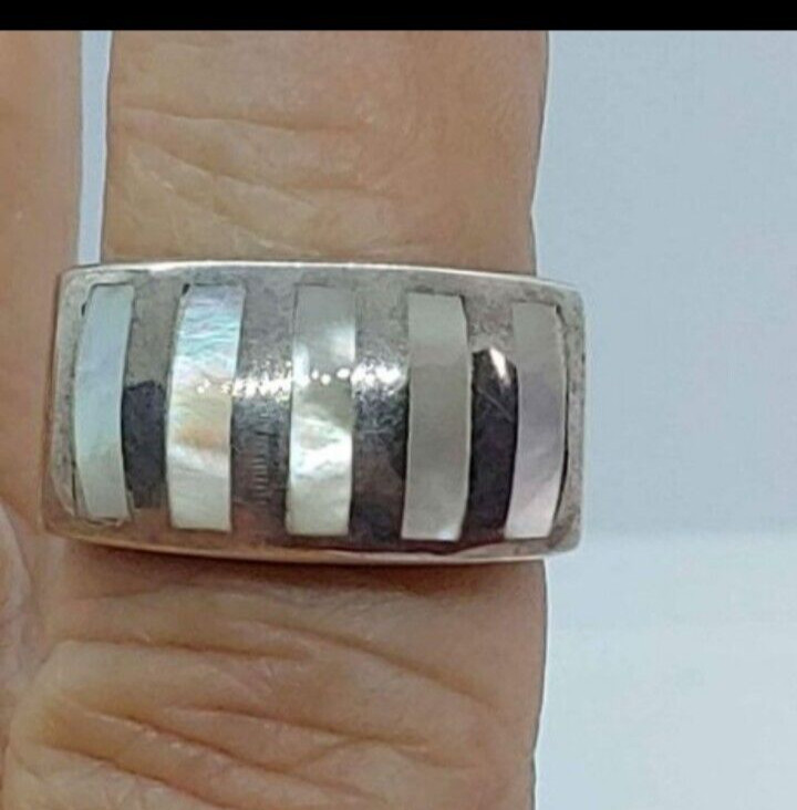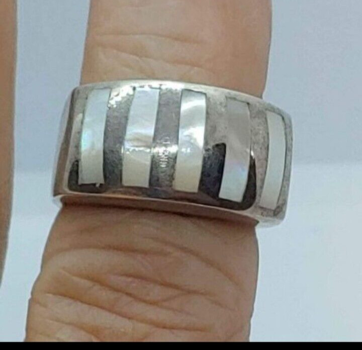 Sterling Silver Mother of pearl inlay band ring sz 5.5