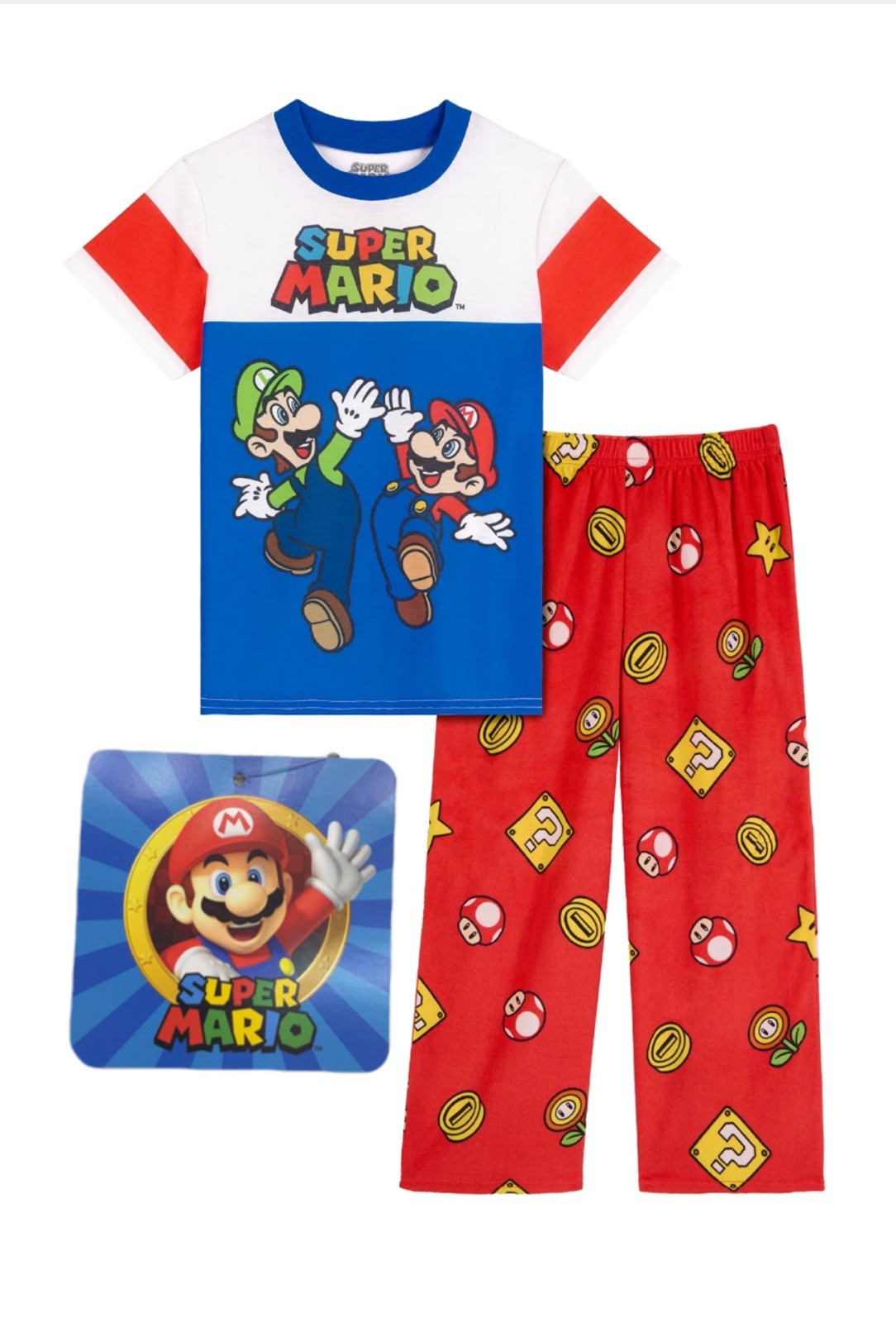 Super Mario Boys Short Sleeve Top and Sleep Pants Pajama Set, 2-Piece, Size 6/7