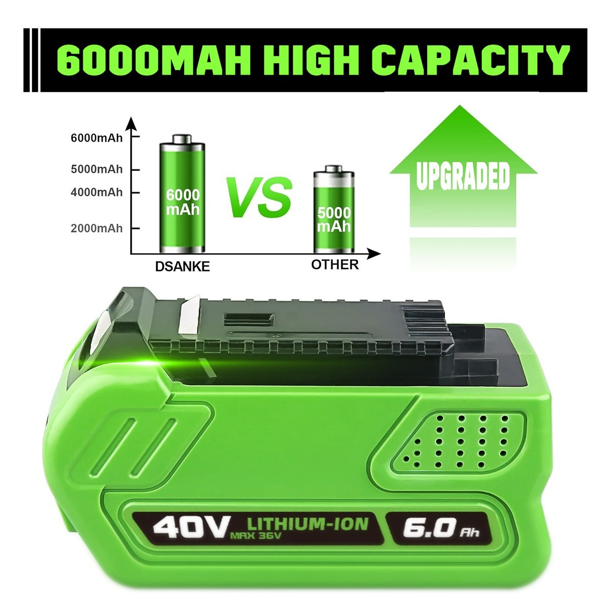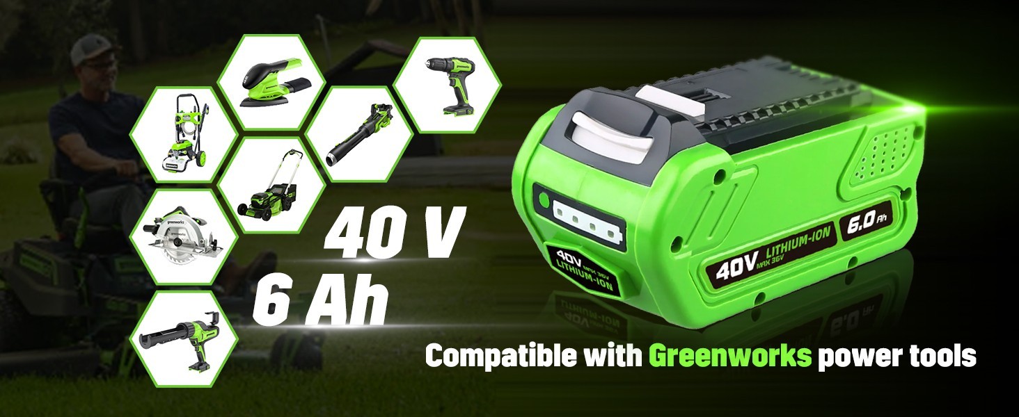 40V 6.0Ah For Greenworks G-MAX Li-ion Battery 29472 29462 29252 20202 Replace