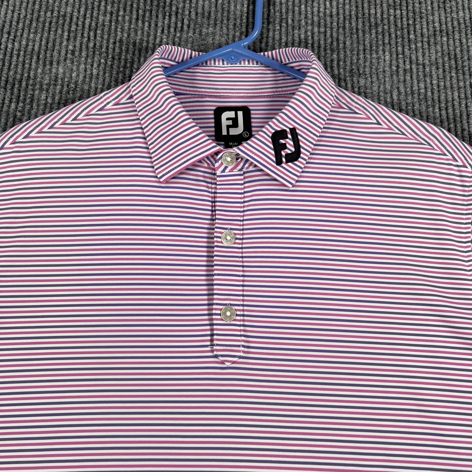 как выглядит FootJoy Polo Shirt Mens Large Purple Short Sleeve Golf Performance Active фото