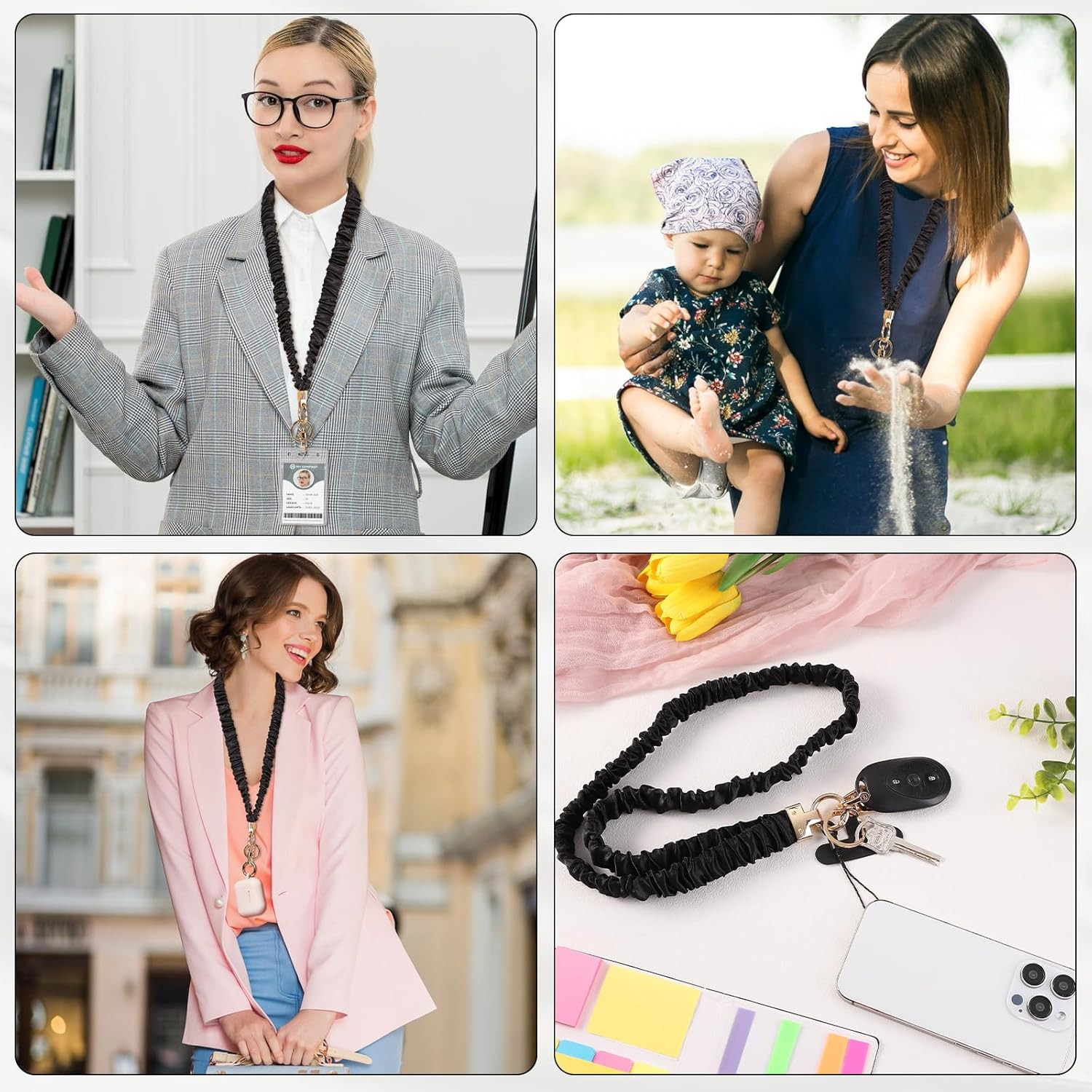 Scrunchie Lanyard for ID Badges, Retractable, Stretchy with ID Holder for Women