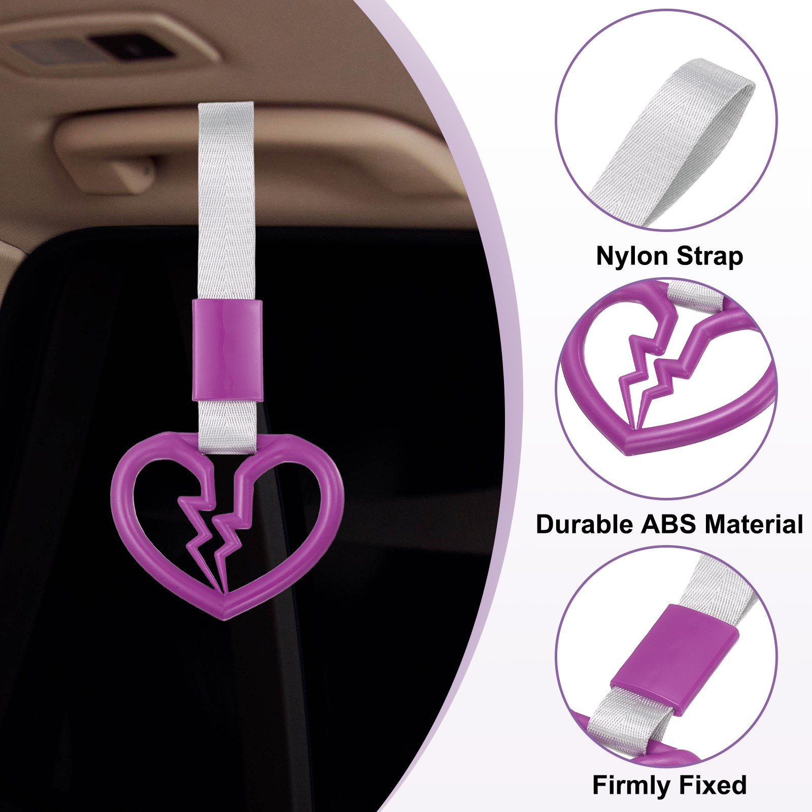 2 Pcs Heart Car Handle Straps Rear Bumper Warning Ring Purple/White
