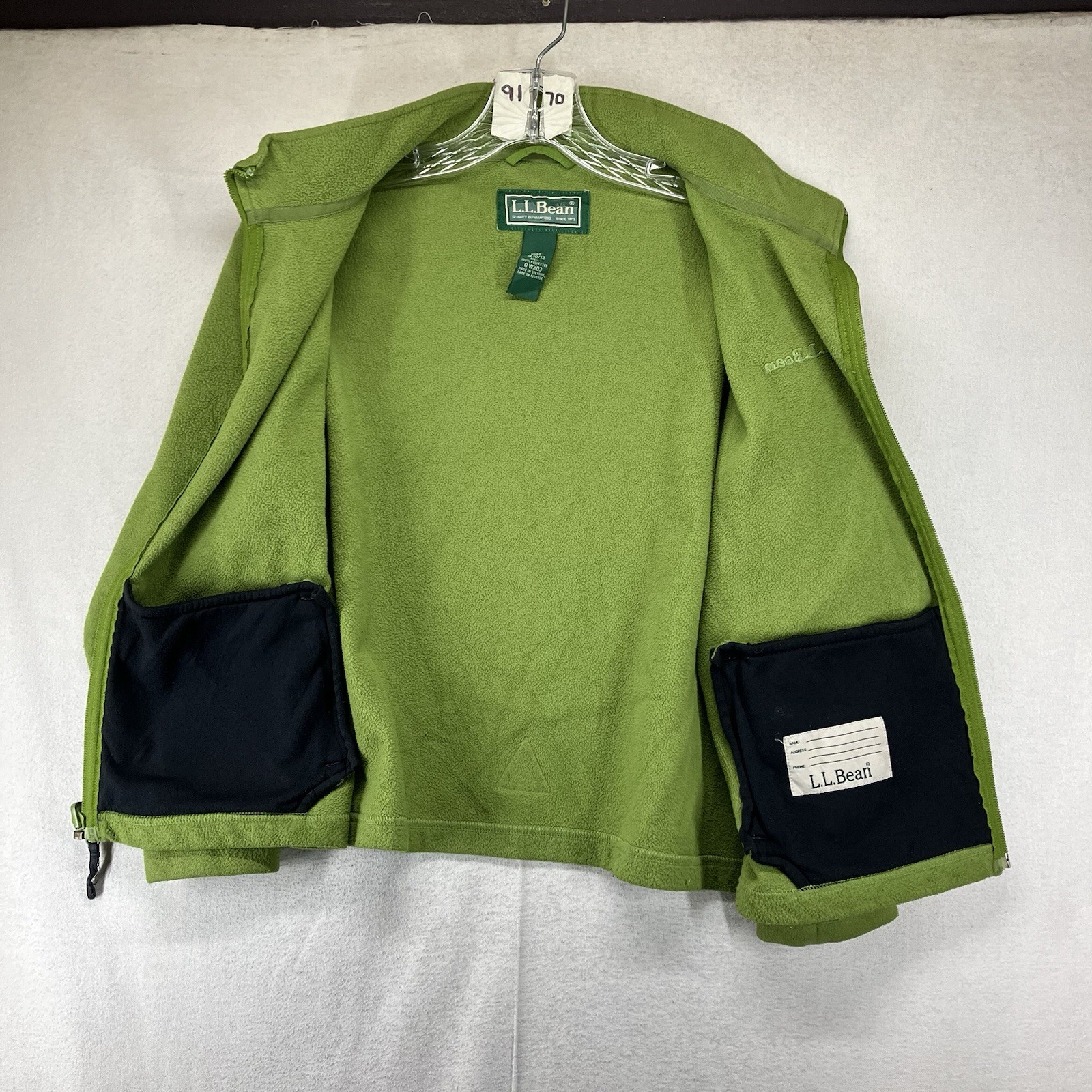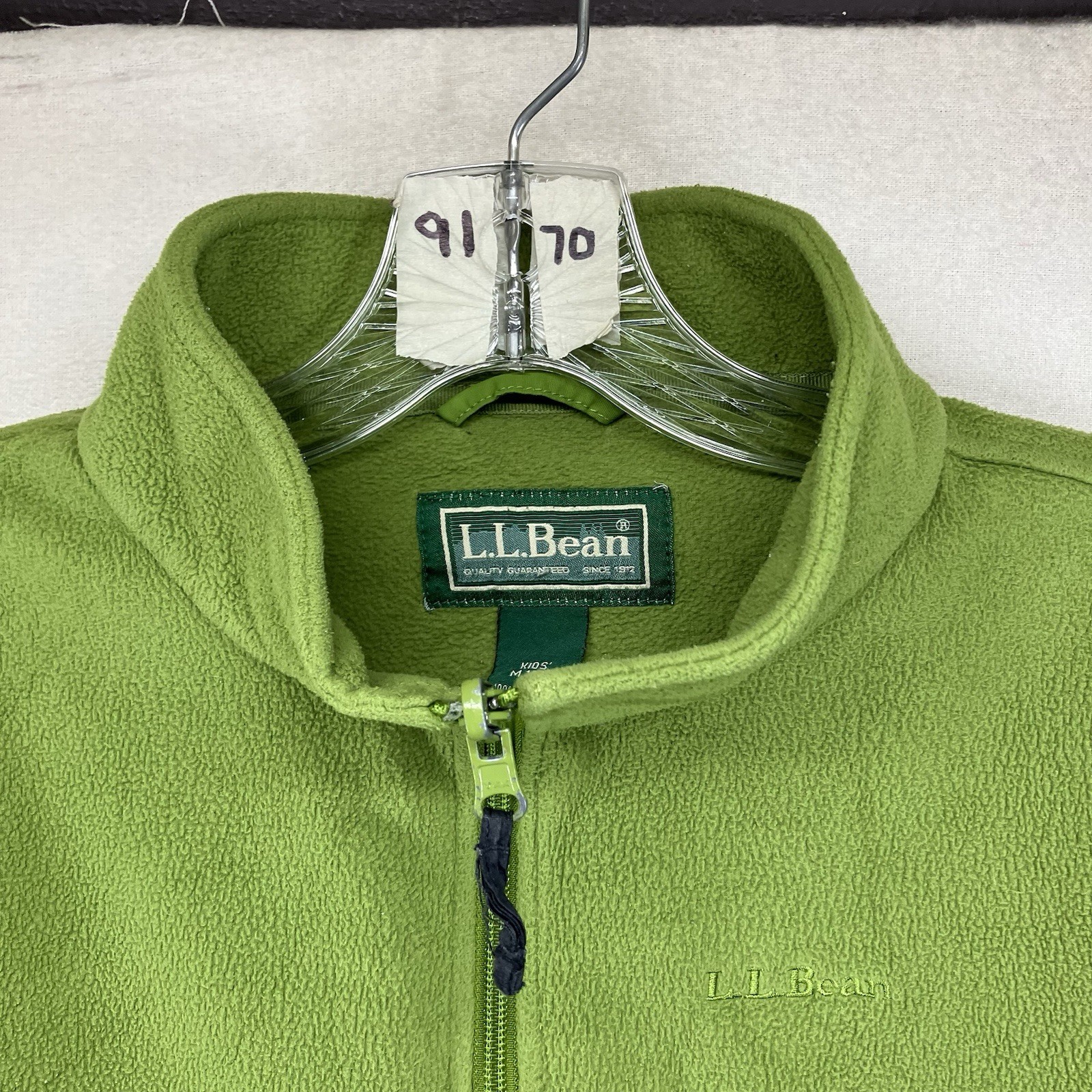 LL Bean Kids Fleece Jacket Boys Kids M 10 12 Avocado Green Full Zip Pockets