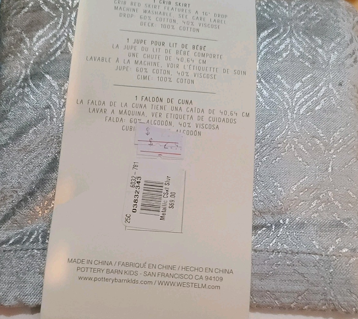как выглядит 1 West Elm Pottery Barn Kids Metallic Silver Gray Crib Bed Skirt Nursery NEW фото