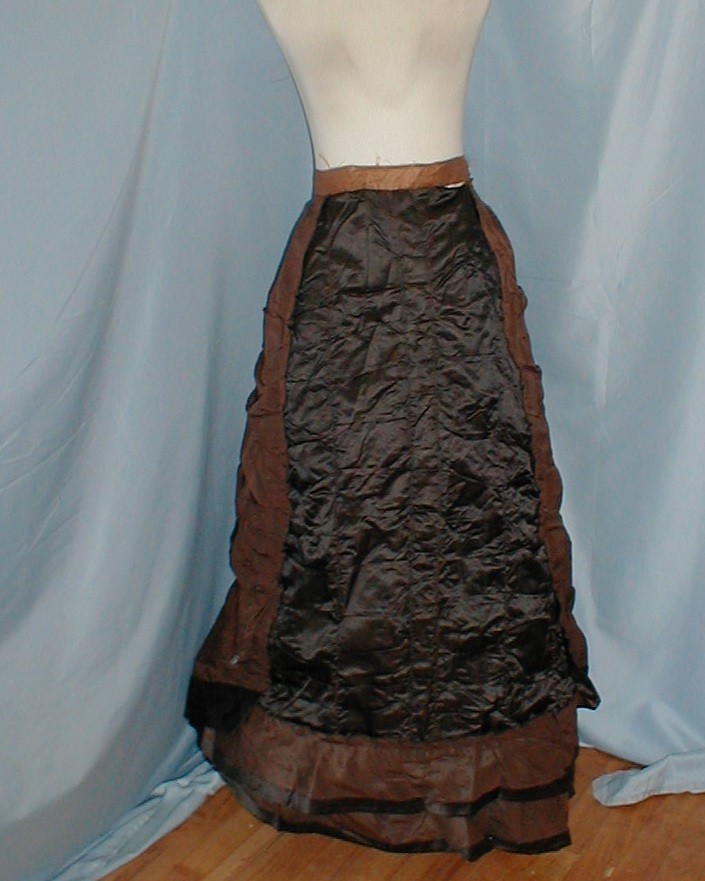 Charming Antique Dress Bustle Skirt Victorian 1880 Brown Silk and Black Satin