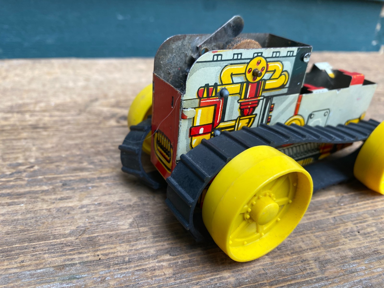 Vintage Mechanical Tin Toy Wind Up Crawler Original Tracks WORKING to Restore