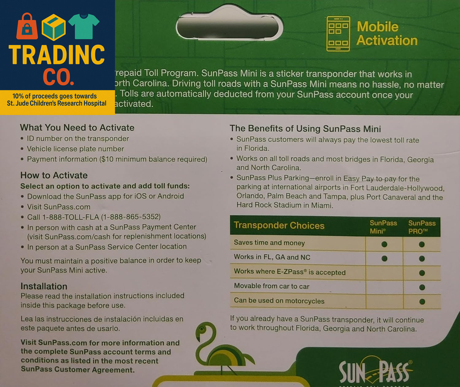 Sunpass Mini Sticker Pre-Paid Toll Program for Florida Styles May Vary