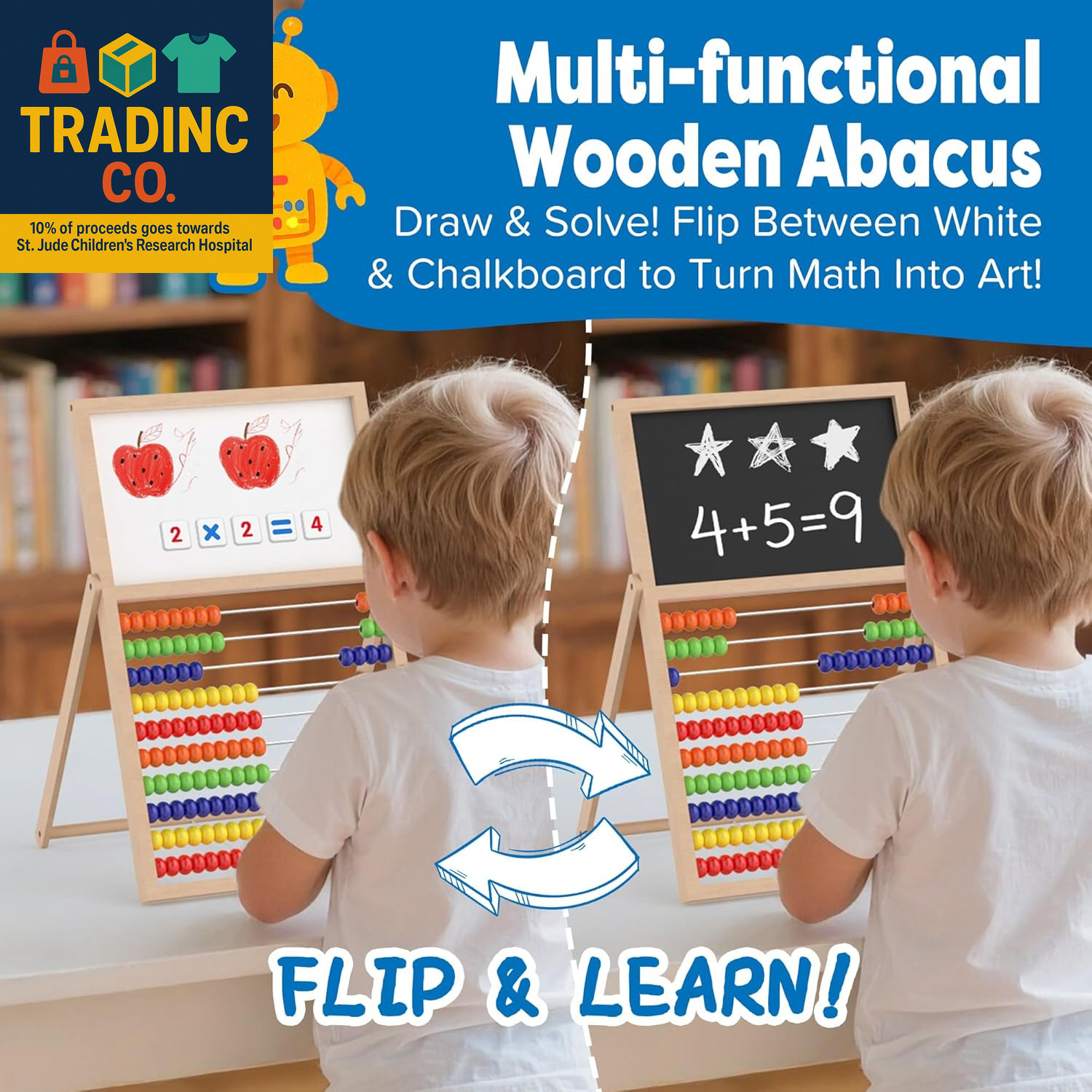 Wooden Abacus for Kids Math - Double-Sided Blackboard Whiteboard for Toddlers wi