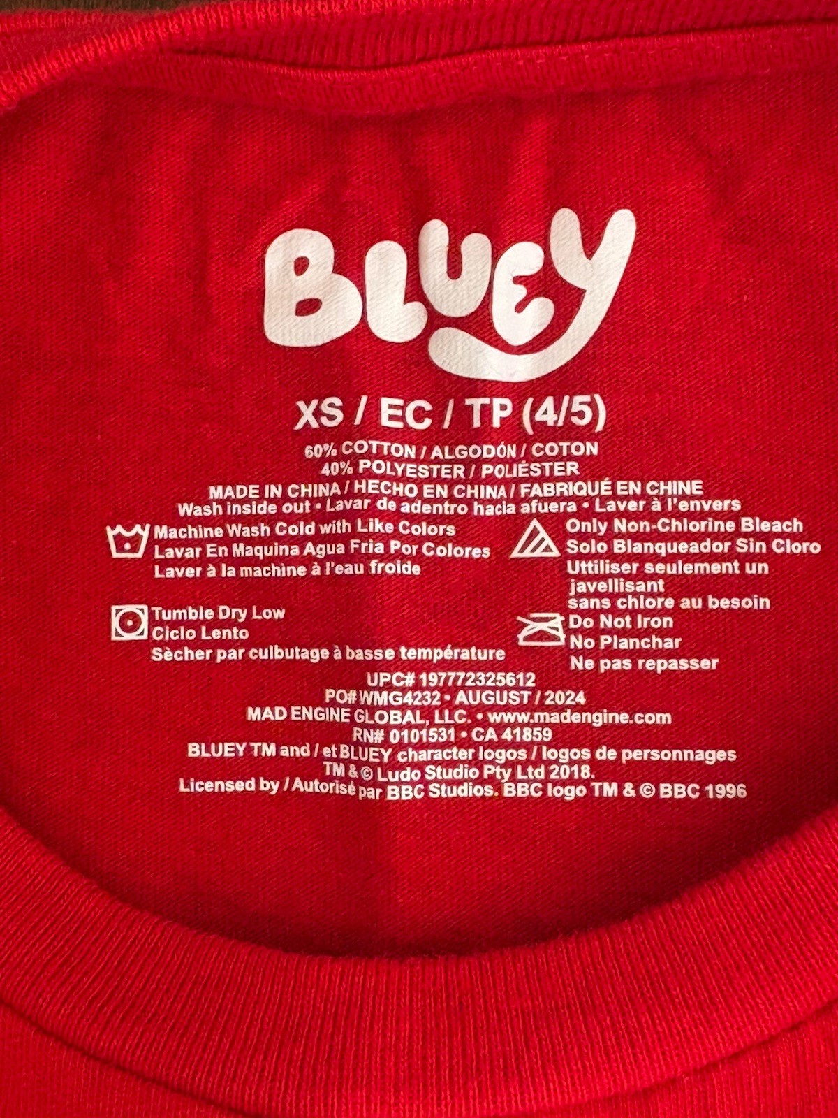 как выглядит BLUEY Christmas Short Sleeve T-Shirt XS 4-5 фото