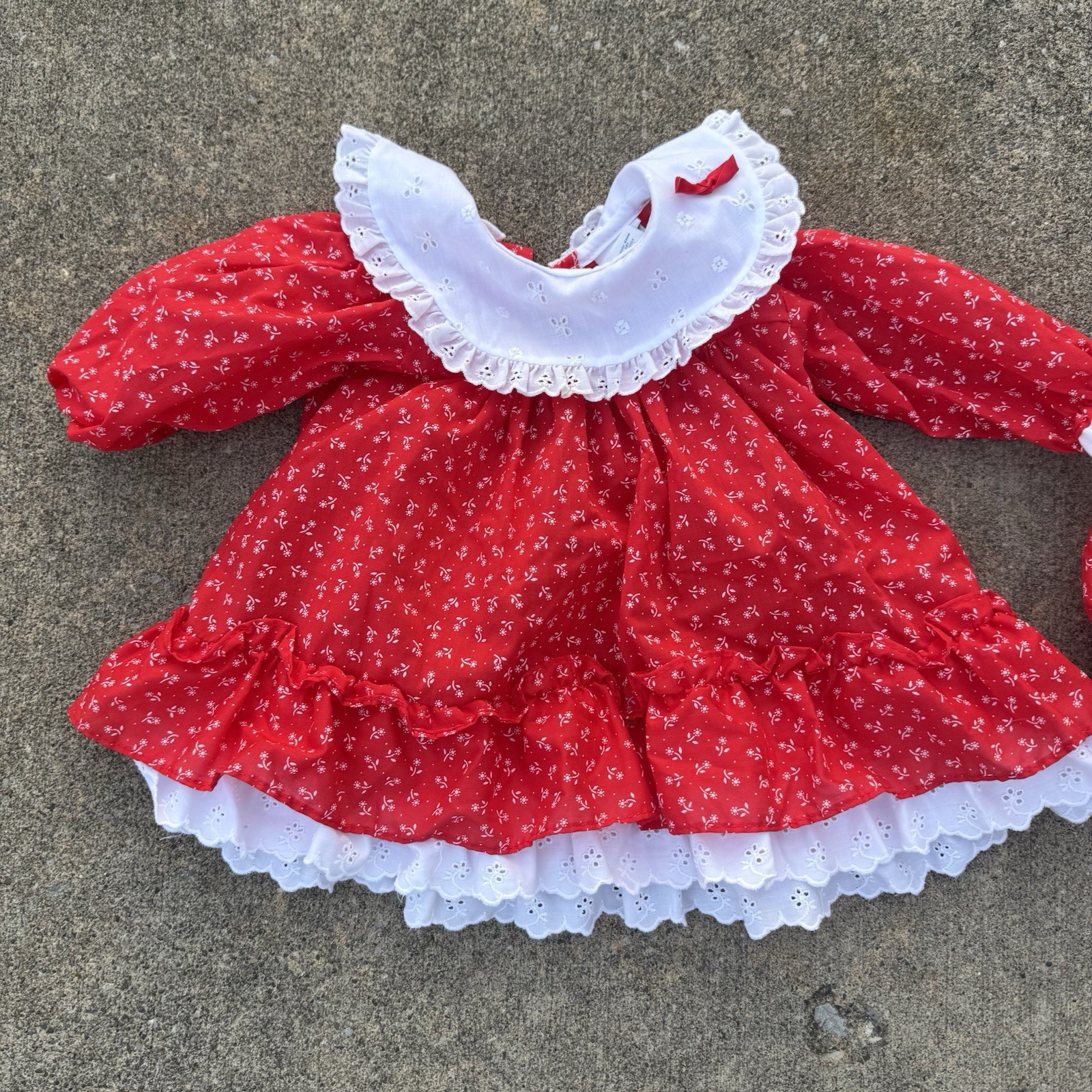 VTG ALEXIS Red Ruffles Floral Lace Long Sleeve Dress 9 Months 9M Cottage Prairie