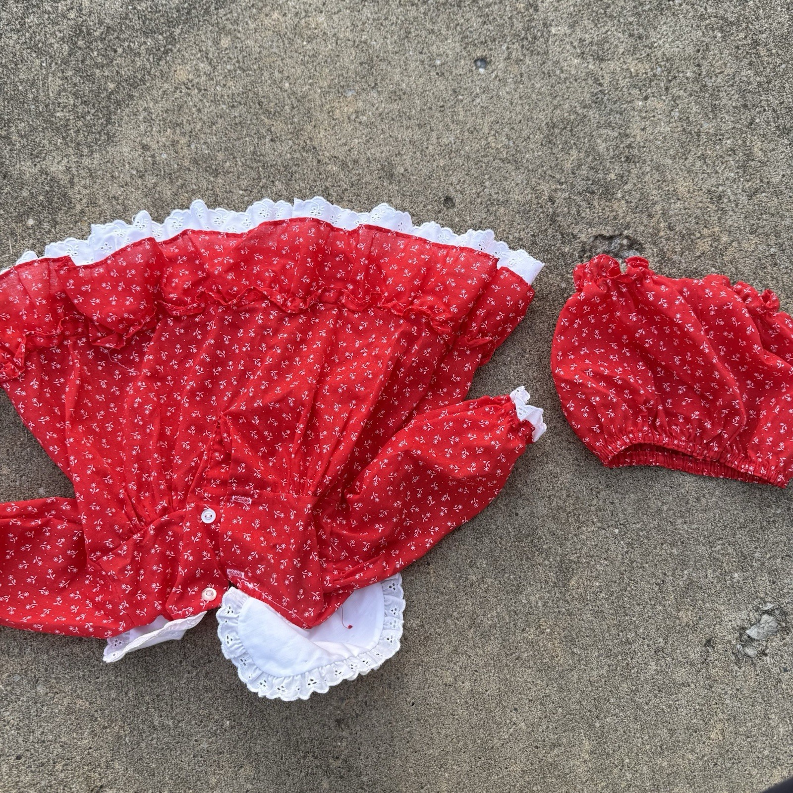 как выглядит VTG ALEXIS Red Ruffles Floral Lace Long Sleeve Dress 9 Months 9M Cottage Prairie фото