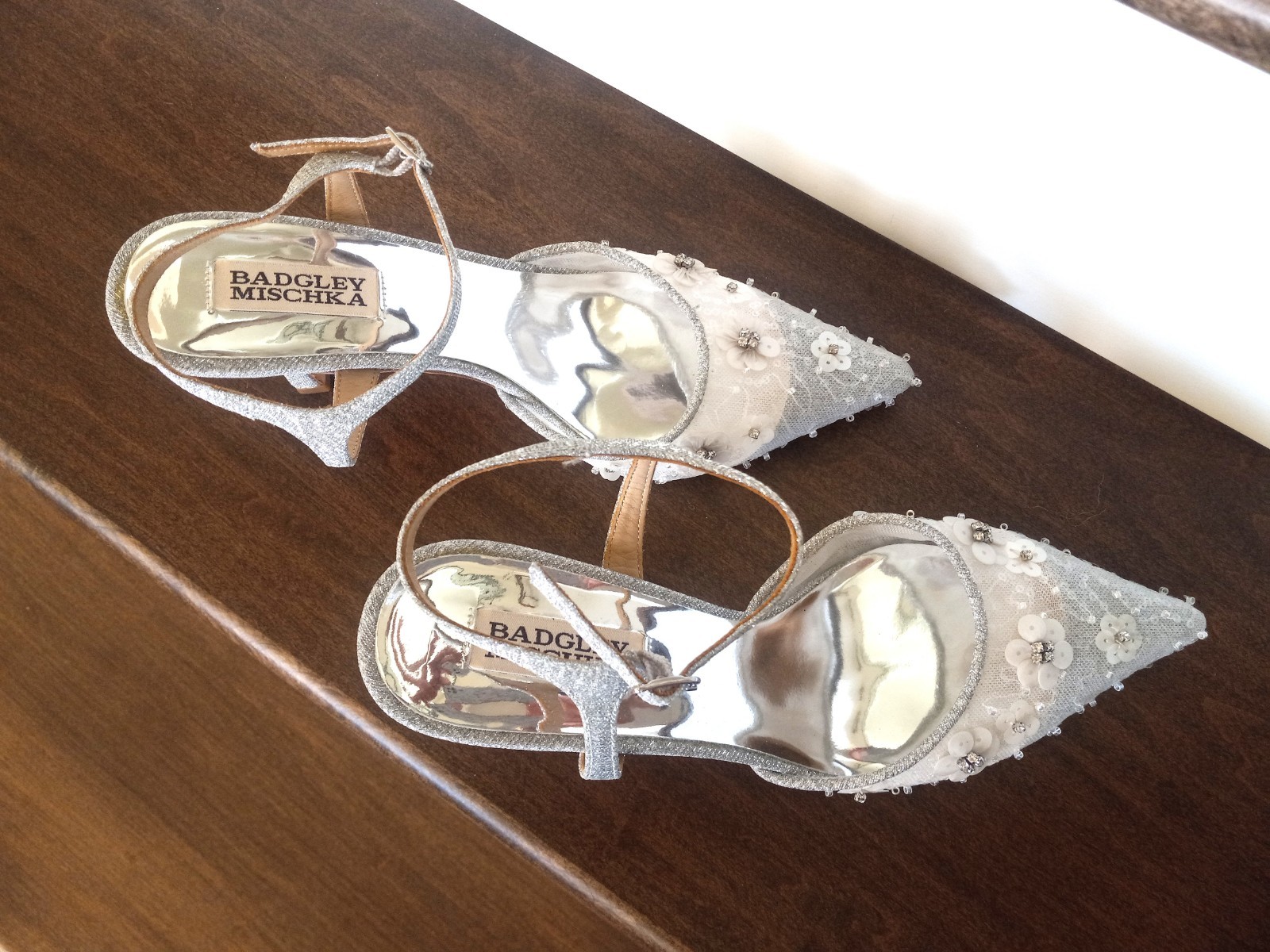 Badgley Mischka Silver White Floral Wedding Shoes Embroidery Mid Heel Size 7