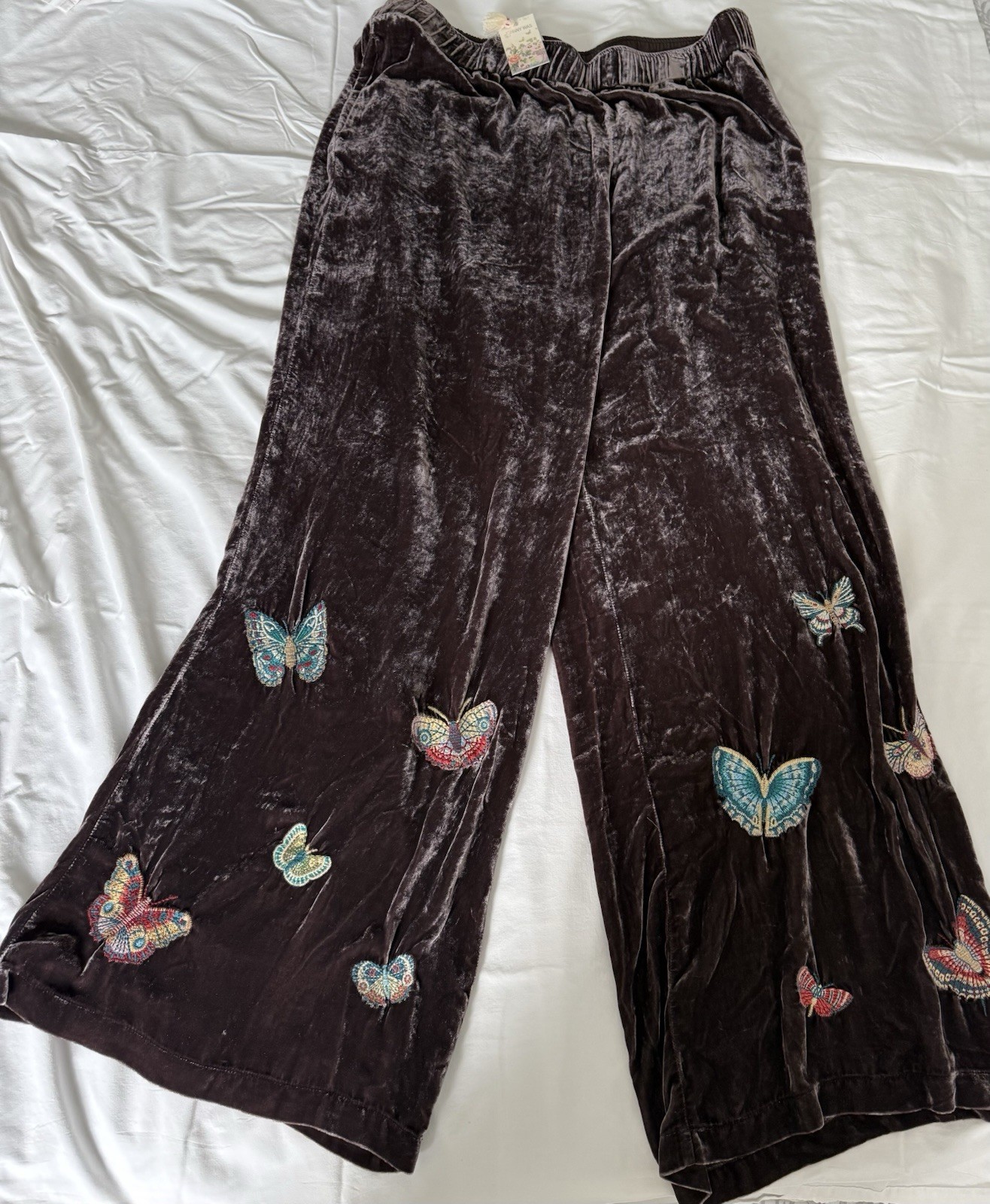 Johnny Was SEAMED WIDE LEG PANT LUCIANA Brown Butterflies Silk Blend XXL NEW
