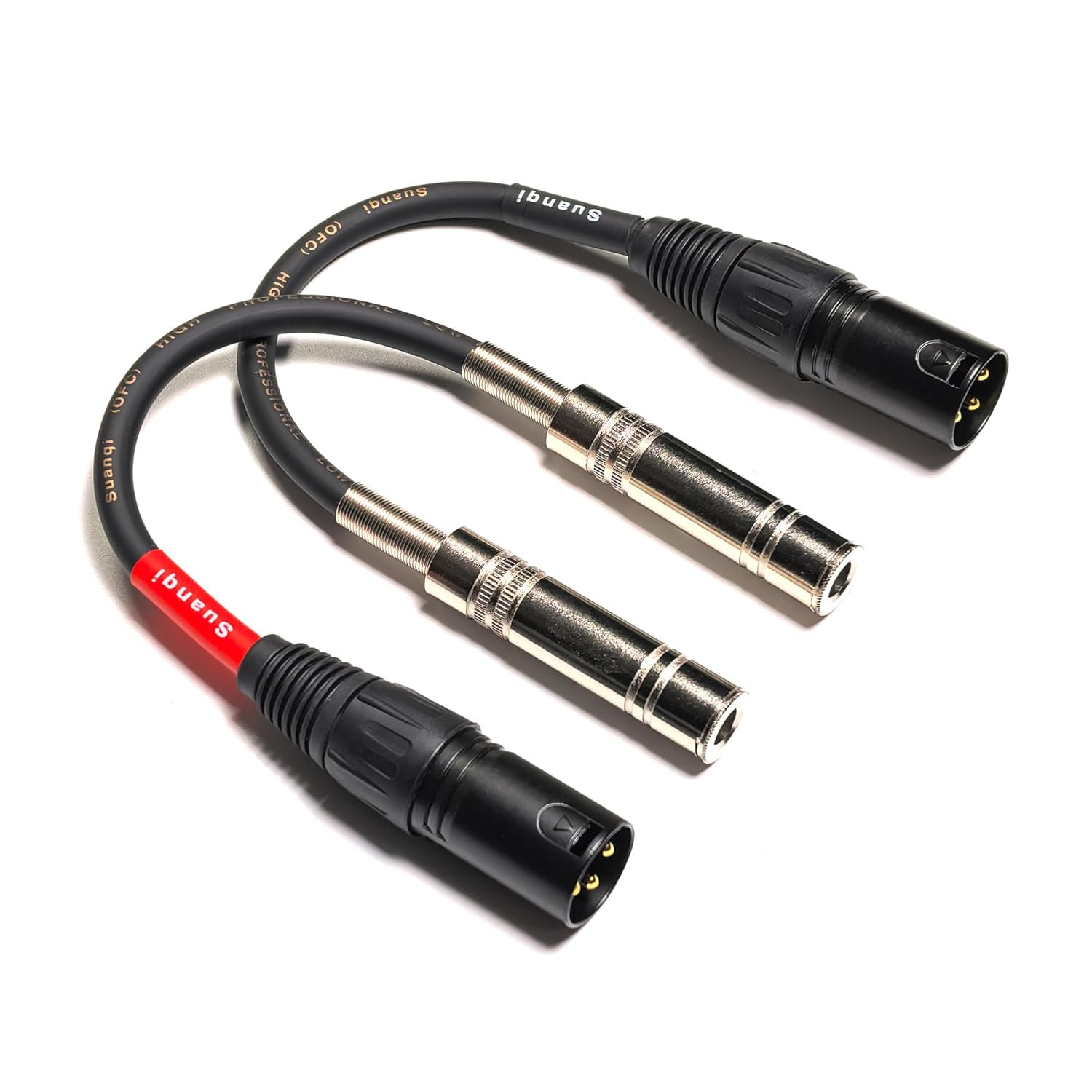 XLR Male to 1/4 Inch TRS Female Adapter Cable, 6 Inch, 2 Pack XLR Male to TRS F