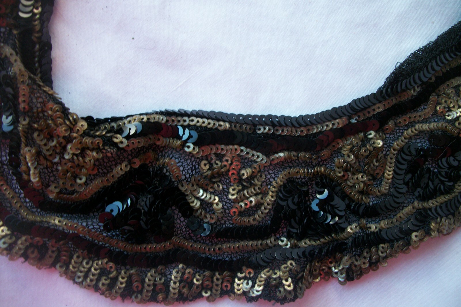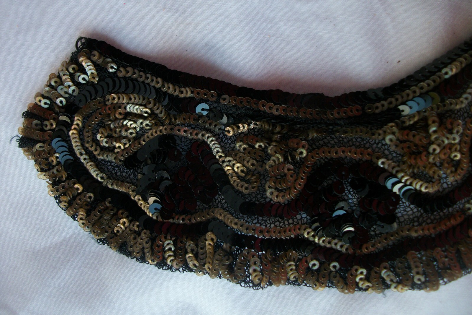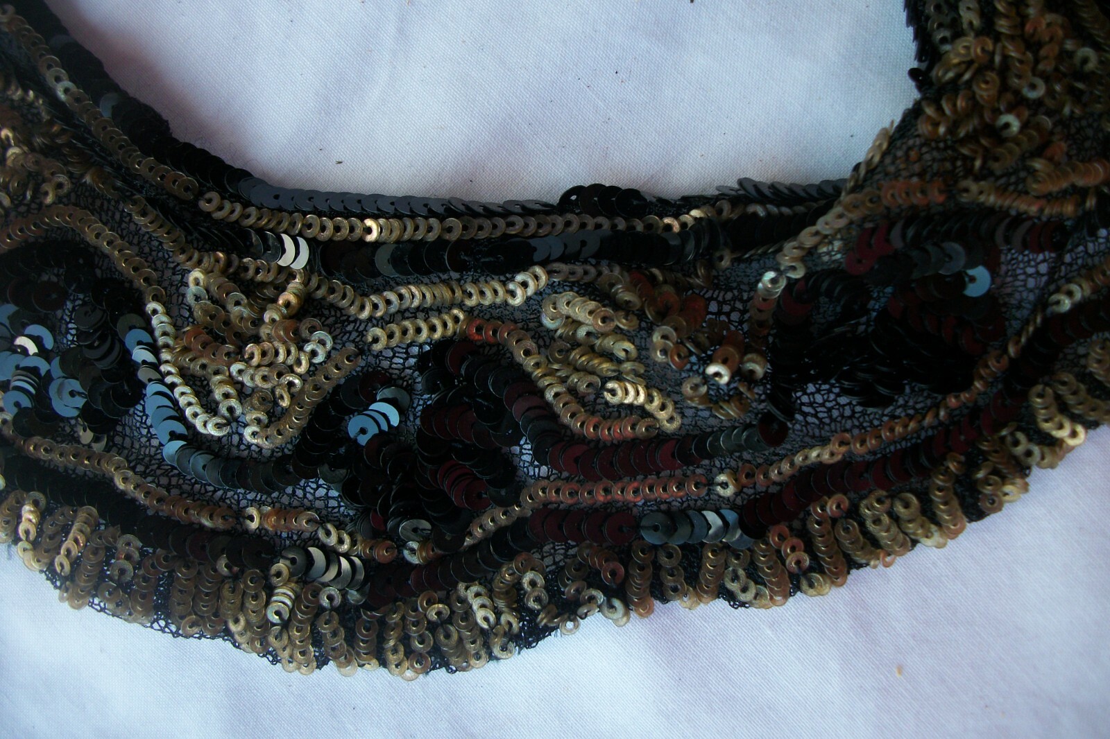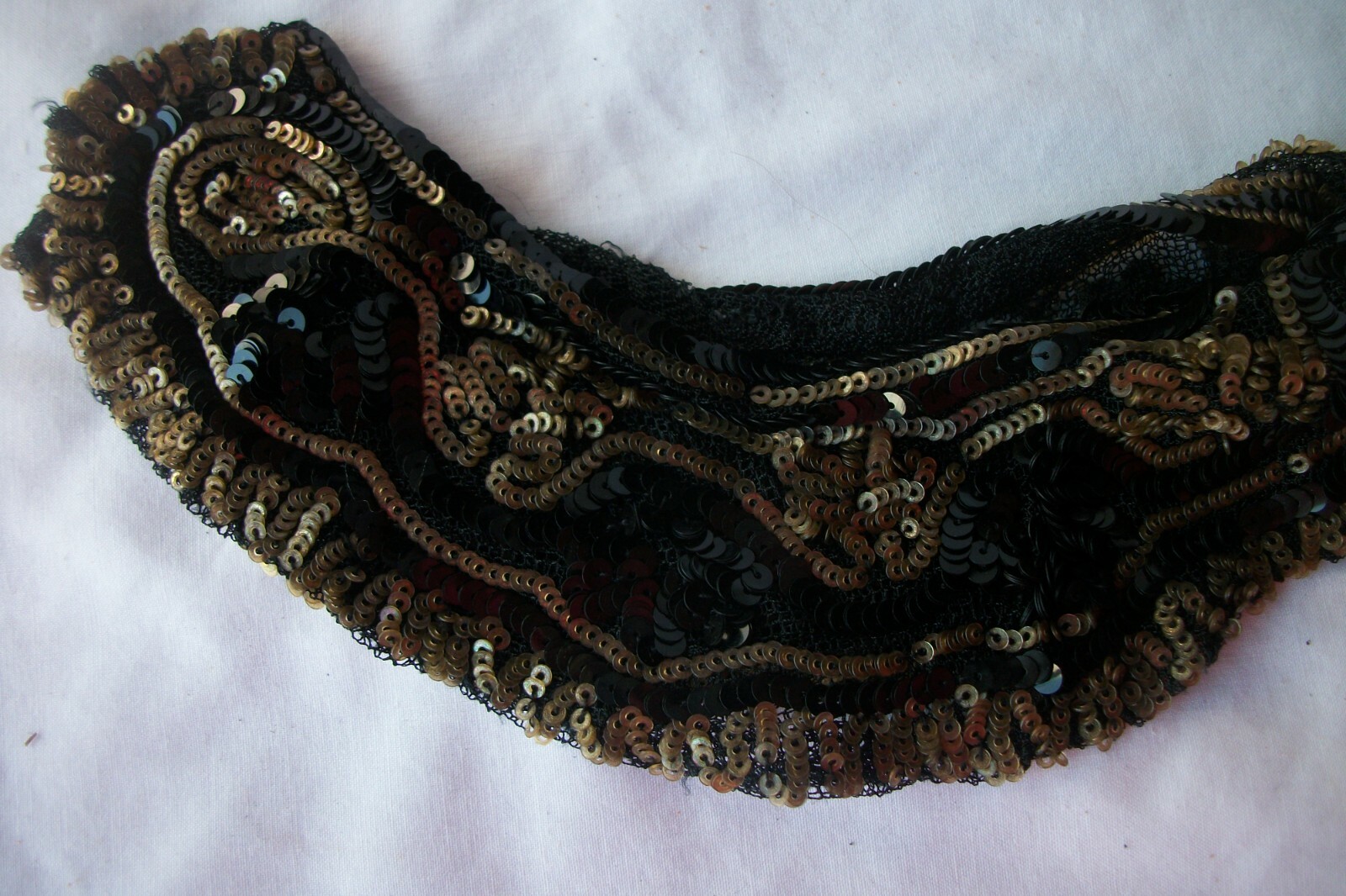 Vintage Sequin Collar Lord Taylor Made in France Black Gold Tone 15 inch