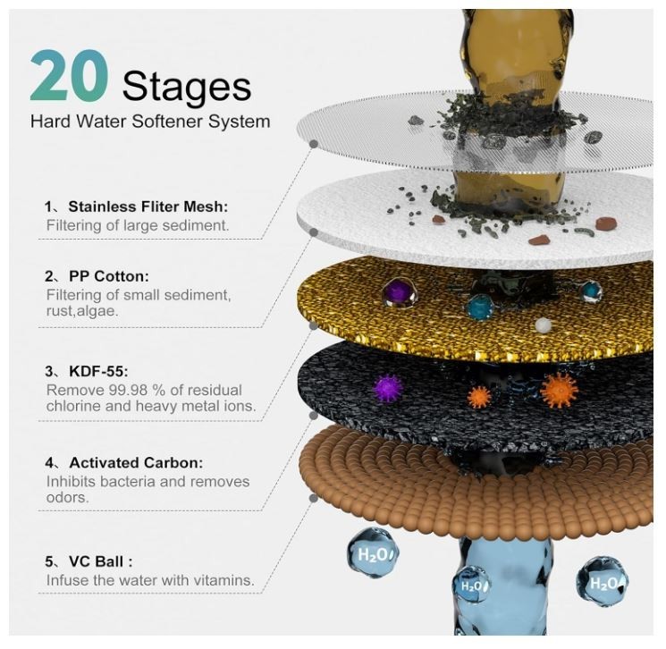 Filtered Shower Head High Pressure for Hard Water Softener Reduces Chlorine