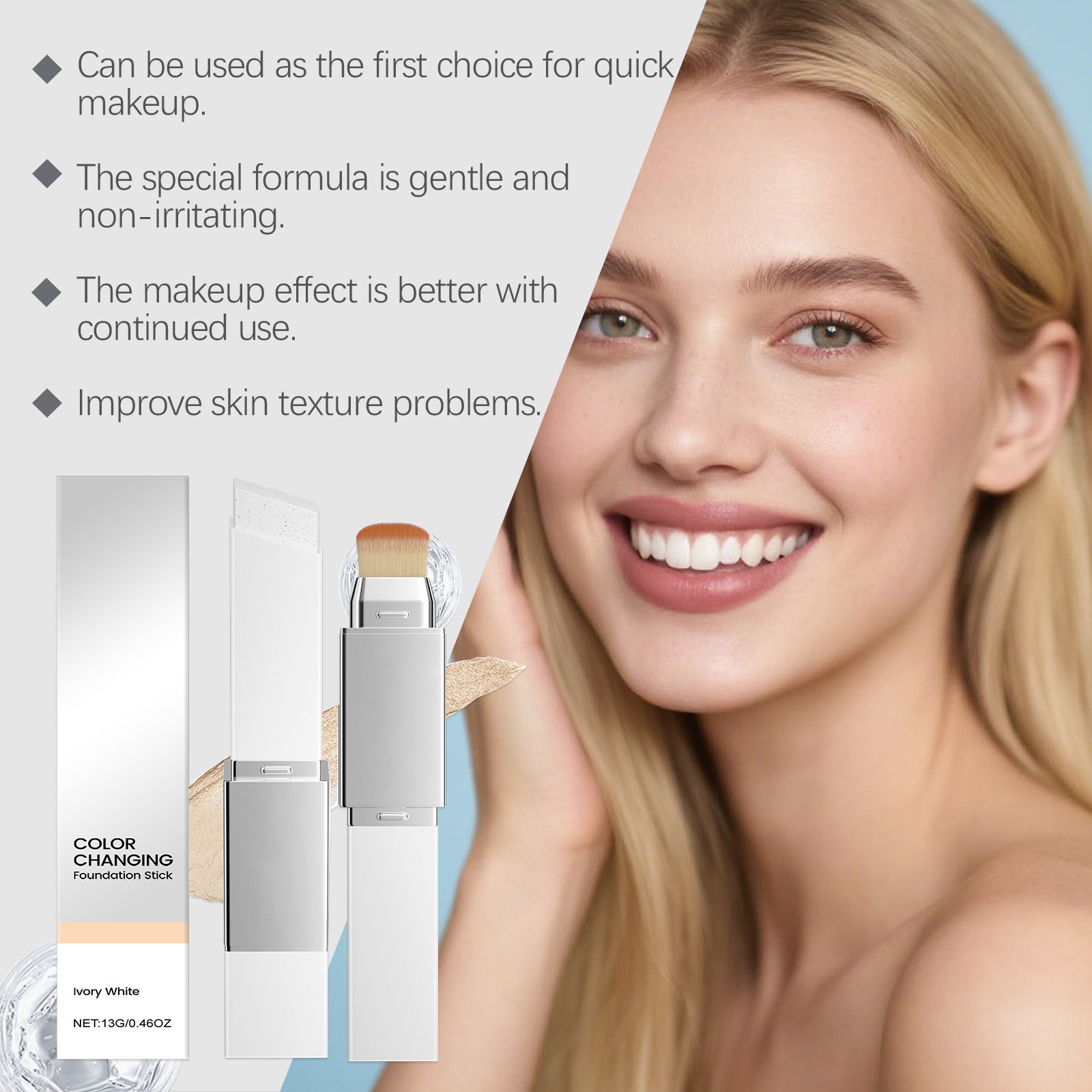Ivory White 2-in-1 Color Changing Foundation Stick Lightweight, Matte Hydrat