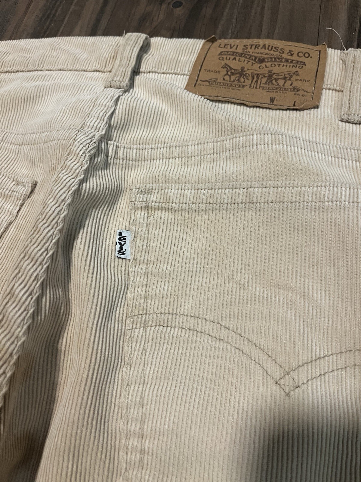 как выглядит vintage levi s 90s 517 white tab khaki corduroy flared pants фото