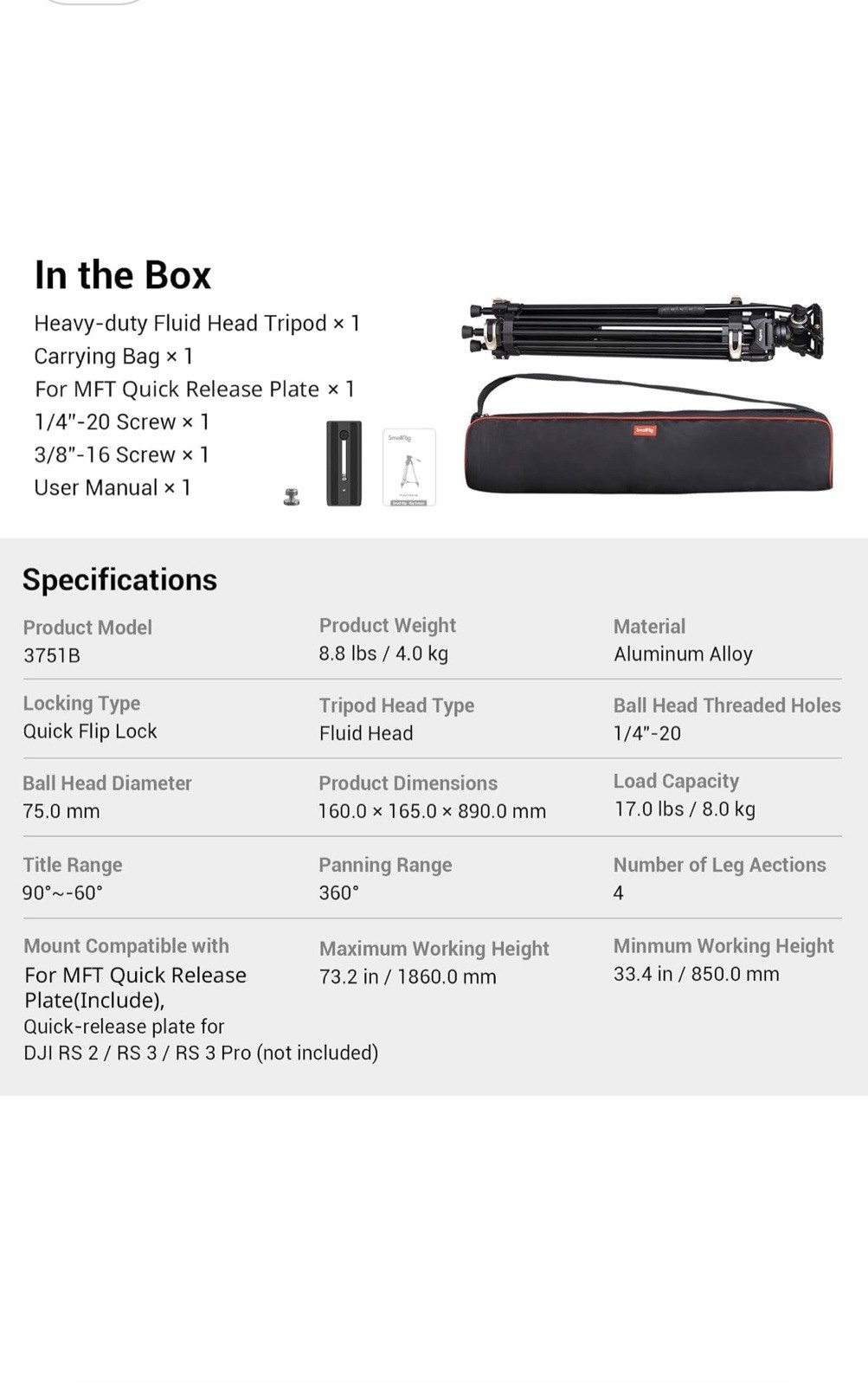 как выглядит SmallRig AD-01 Video Tripod, 73" Heavy Duty Tripod with 360 Degree Fluid Head... фото