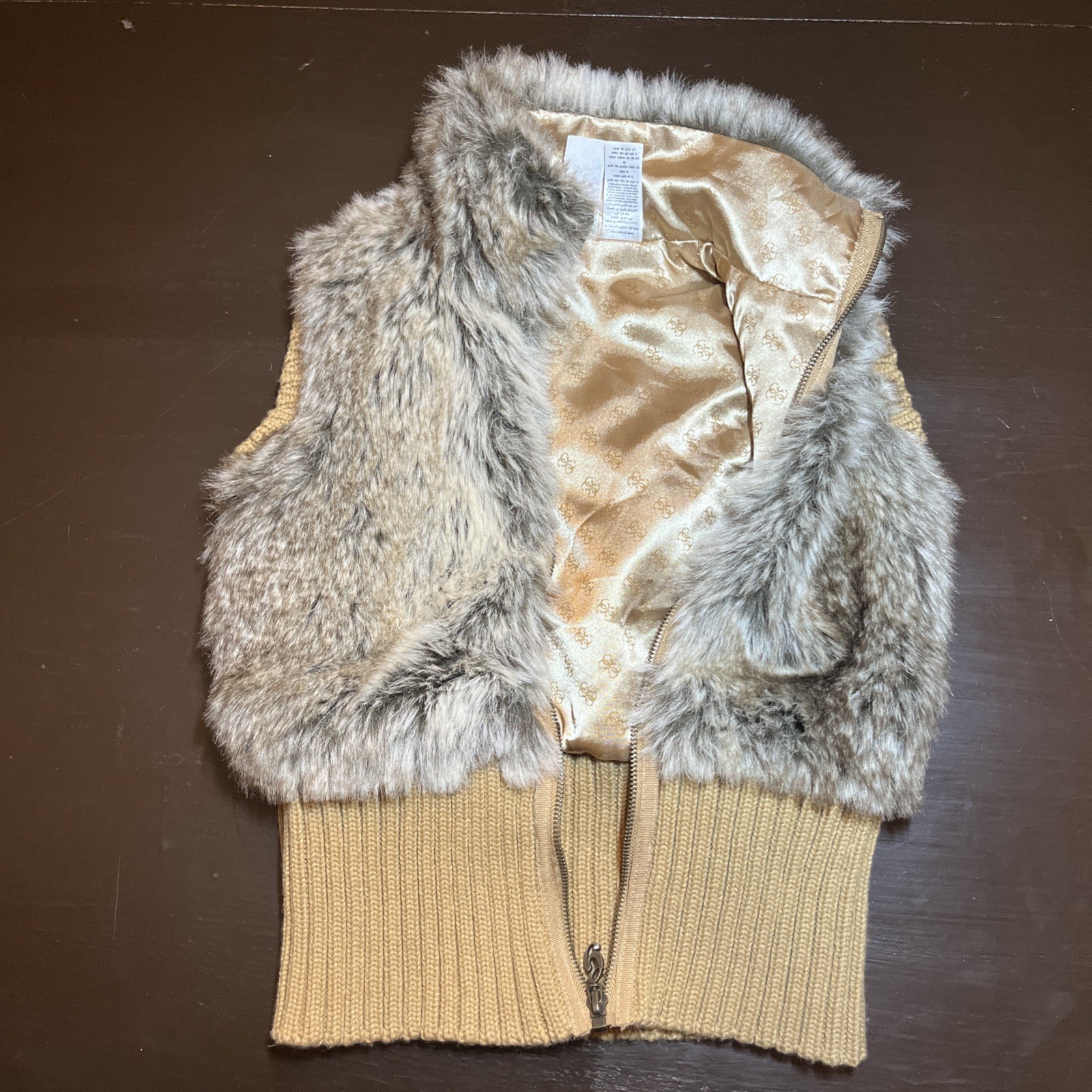 Vintage Faux Fur Guess Vest Jacket Women s Size Large 14