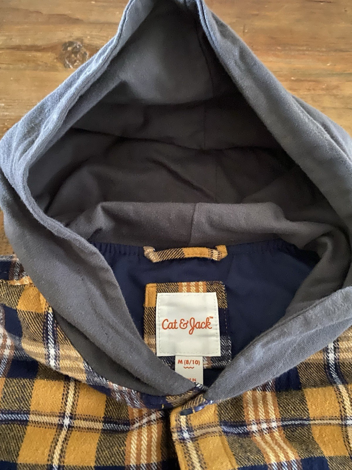 NWT Boys Cat Jack Hooded Flannel Lined Long Sleeve Button Front Medium 8/10