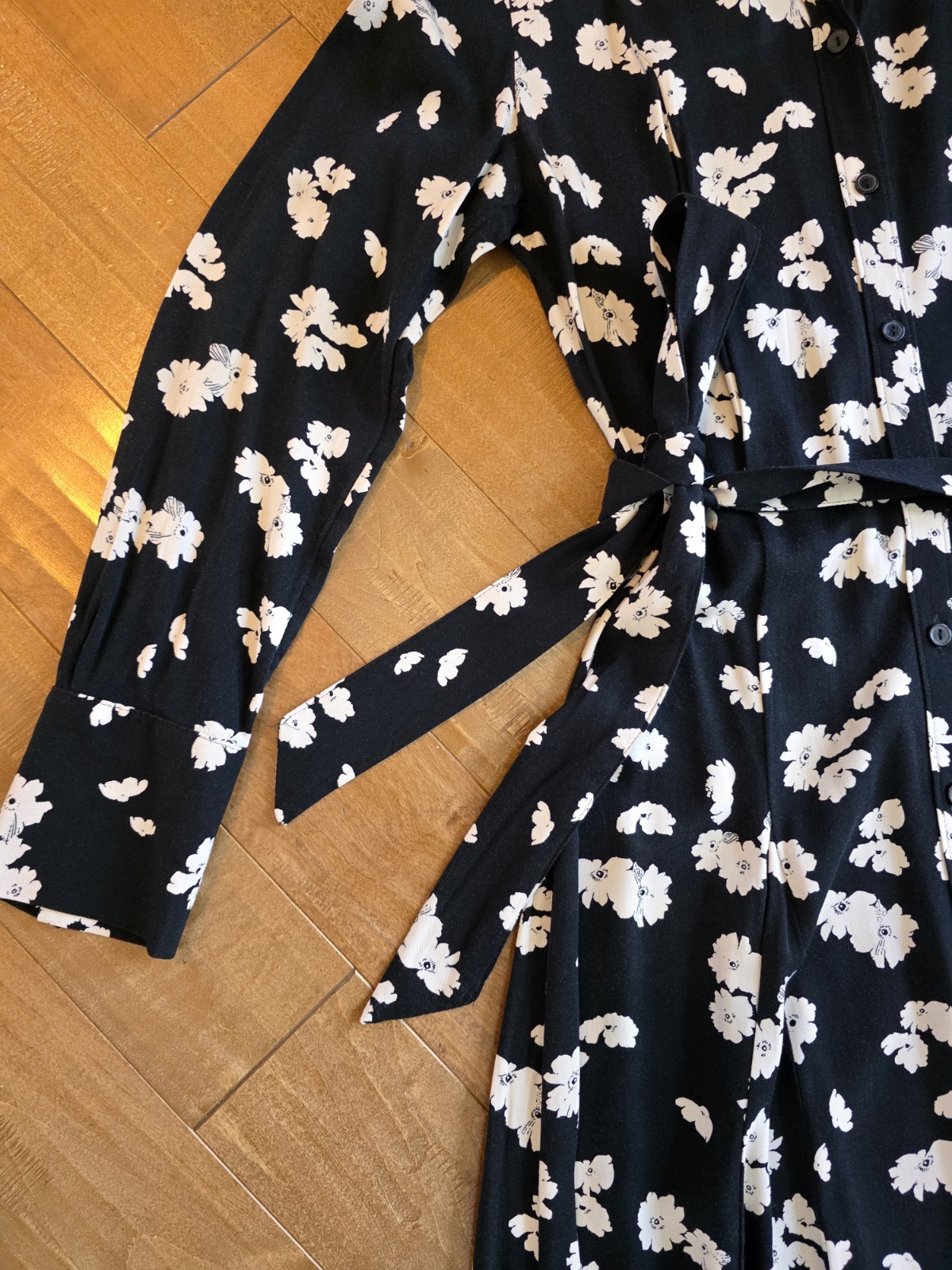 как выглядит Marks Spencer Black Floral Midk Shirtdress Size UK 6 US 2 фото