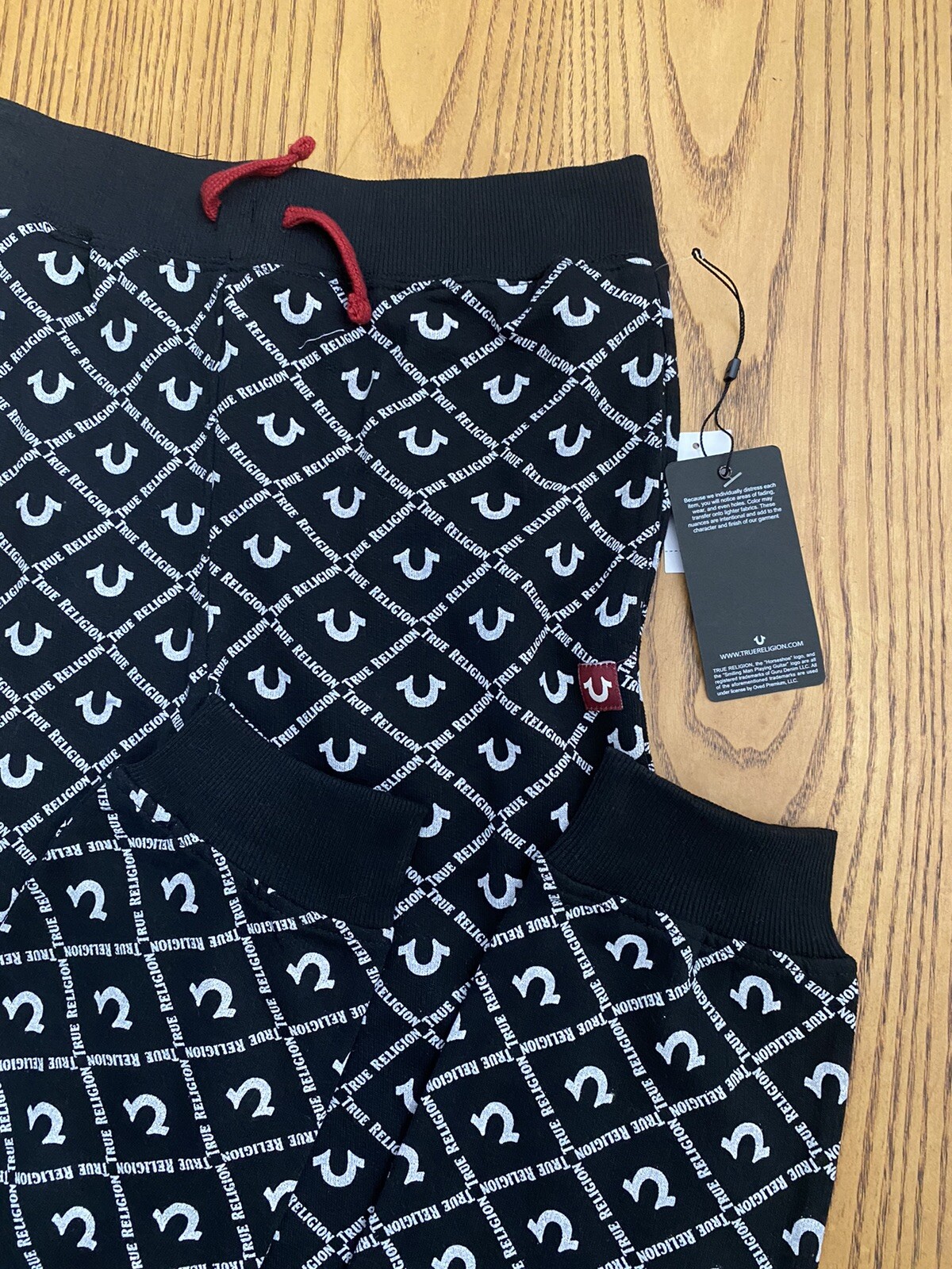 как выглядит TRUE RELIGION YOUTH JOGGER SWEATPANTS BLACK/RED SIZE LARGE NWT 59 фото