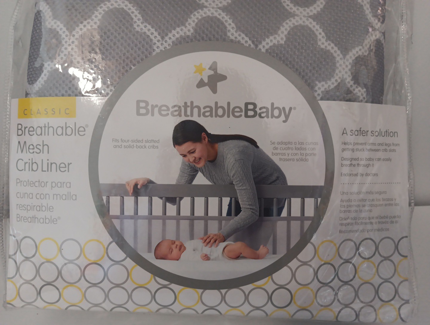 BreathableBaby Breathable Mesh Crib Liner Gray White Clover