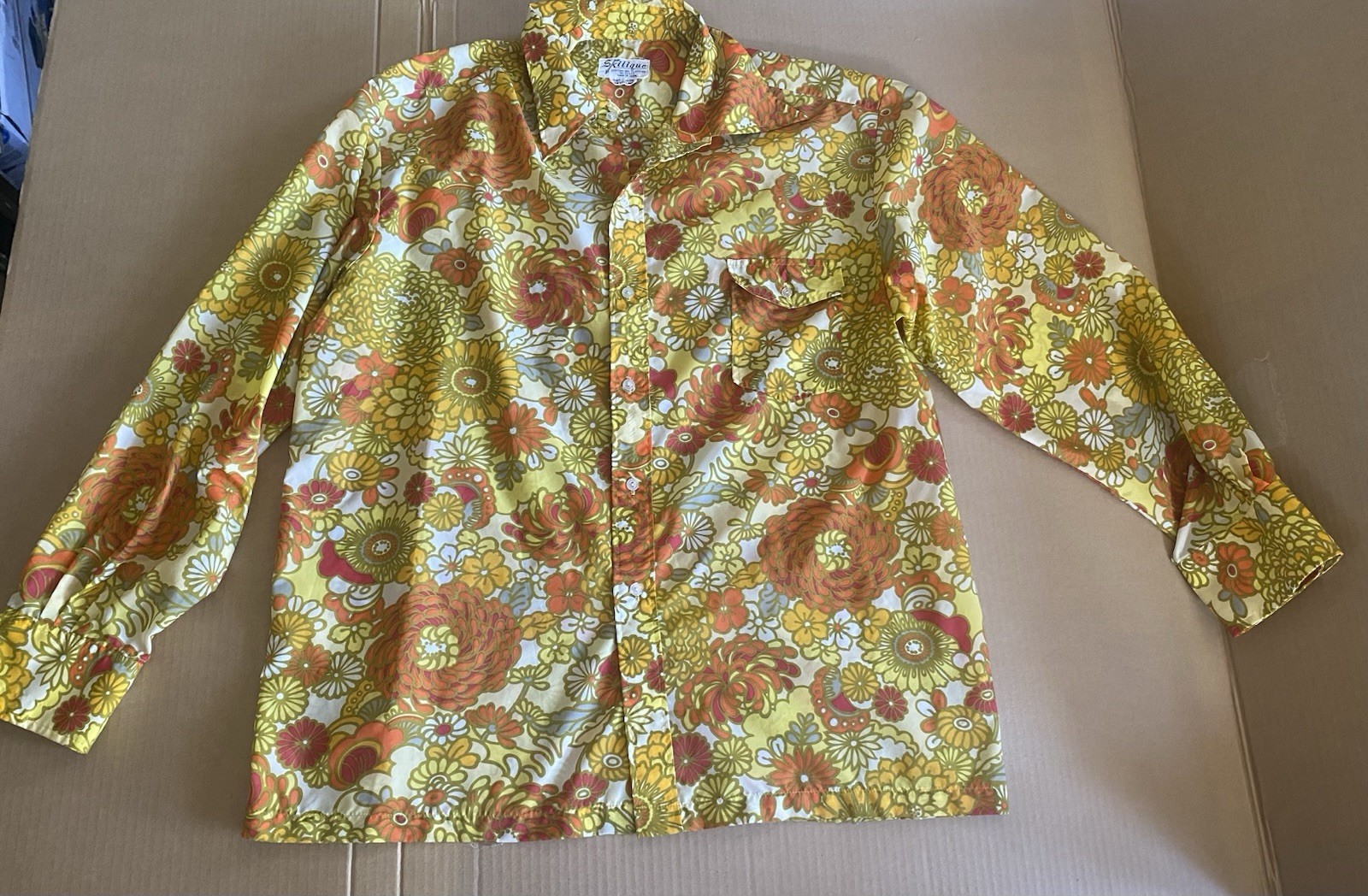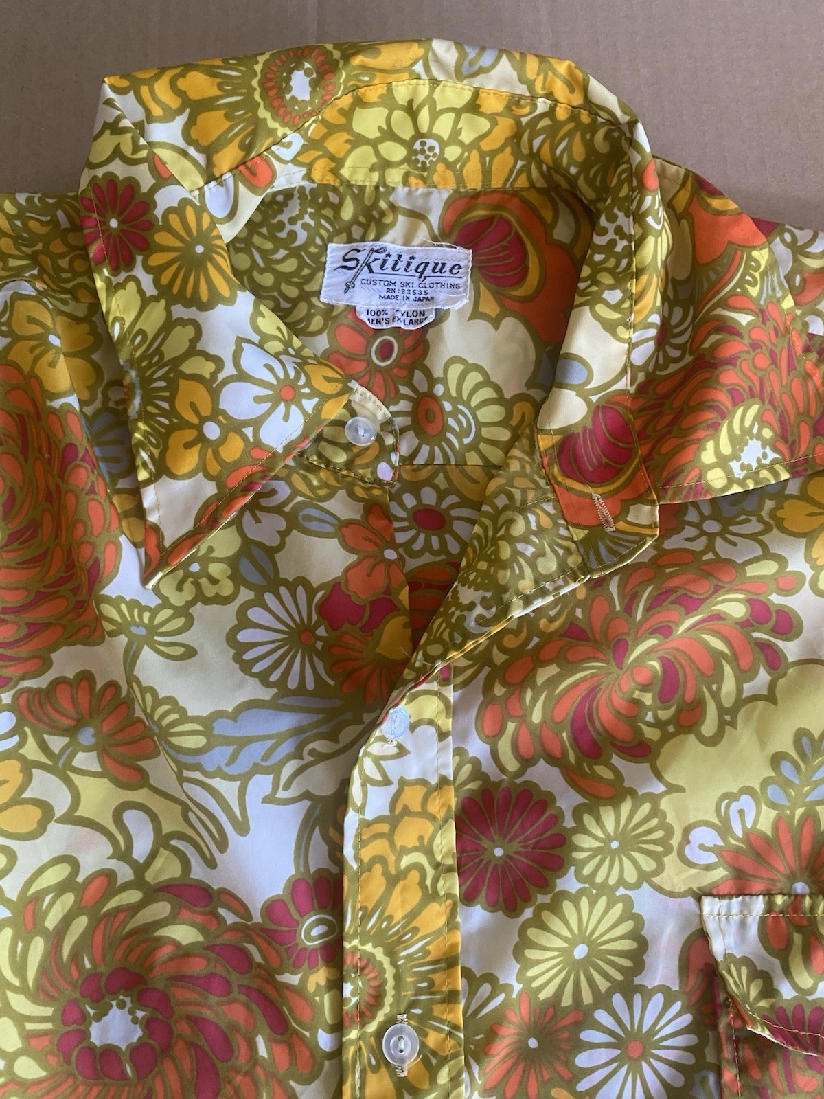 Vtg Skitique Made In Japan Nylon Long sleeve Floral Print Shirt 70s Ski Men s XL