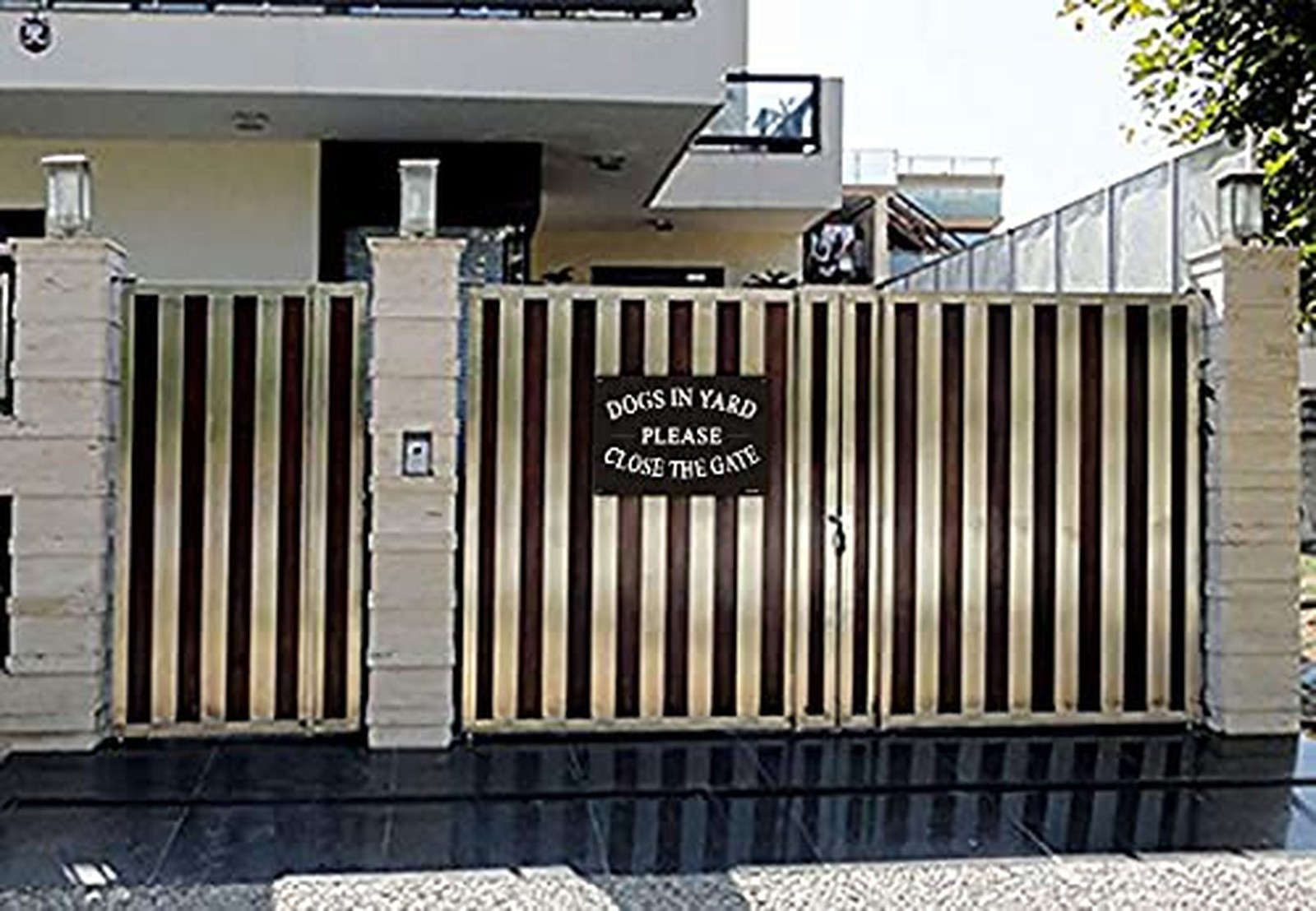Dogs in Yard Please Close the Gate Sign, Yuntarda 2 Pack 10x7inches Reflecti...