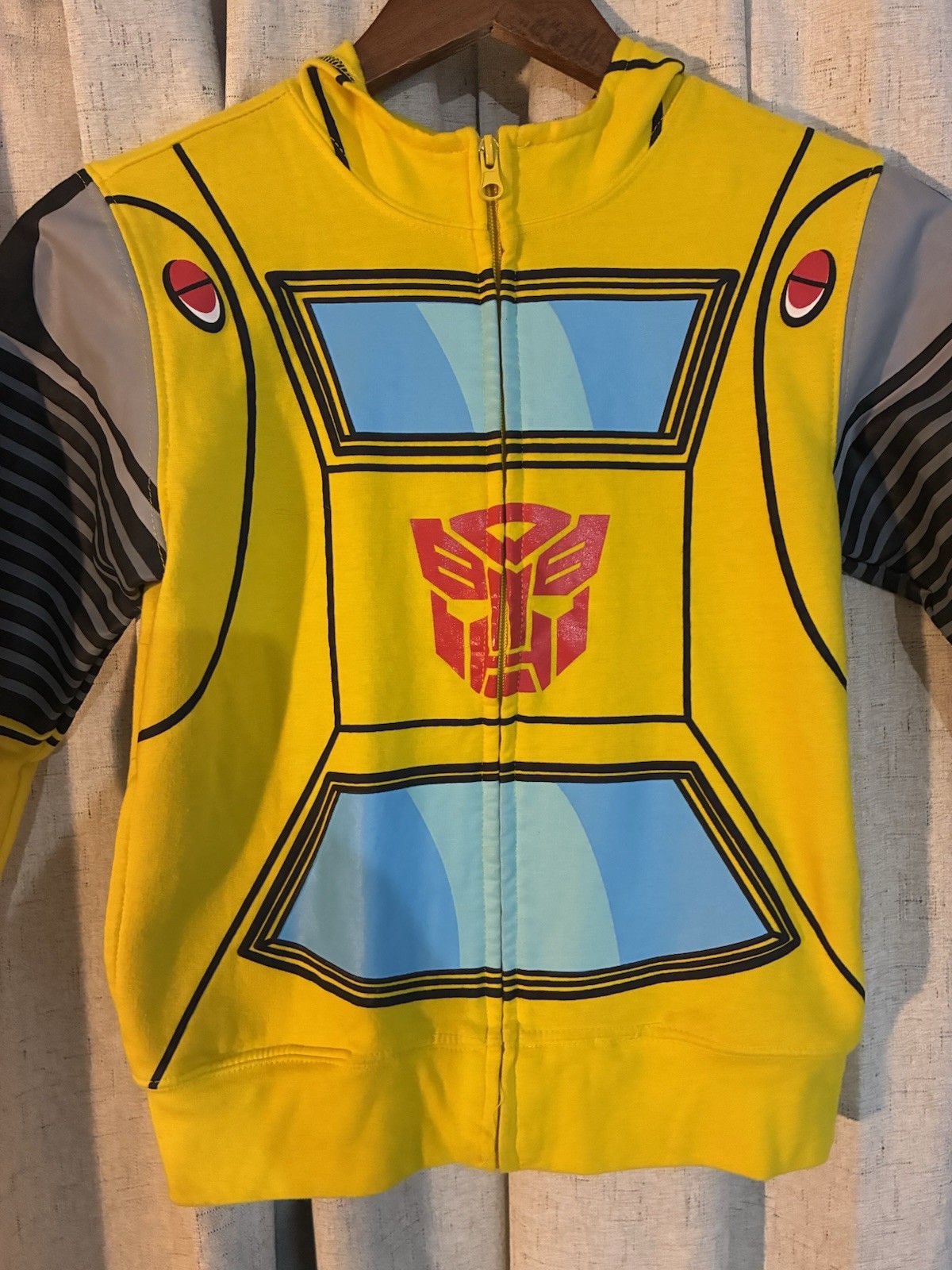 как выглядит Transformers Bumblebee Hoodie Sweatshirt M 5 6 Face Mask Full Zip POCKETS Yellow фото