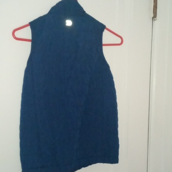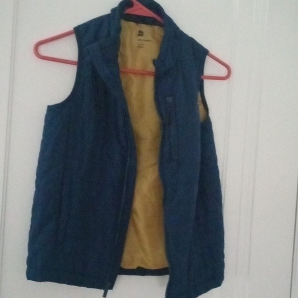 как выглядит boys medium puffer Blue Sleeveless Vest with Yellow Lining фото