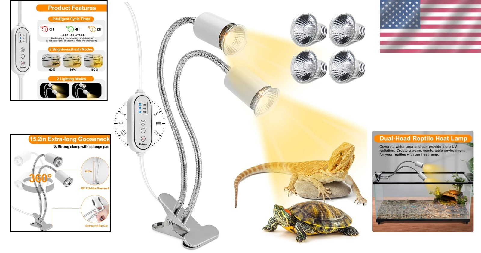 Versatile 360 Dimmable Reptile Heat Lamp with Cycle Timer 4 UV Bulbs Included