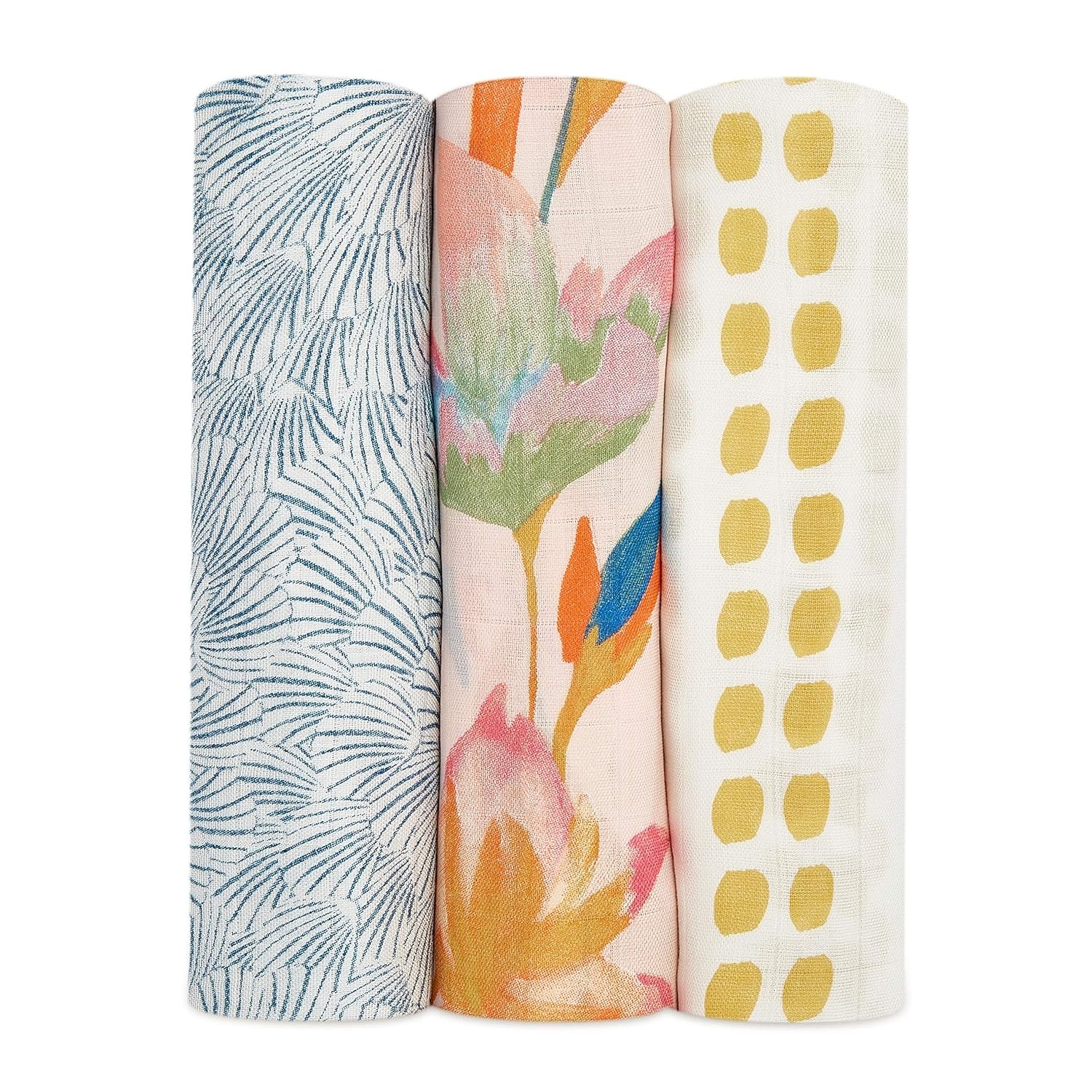 Boutique Muslin Blanket, Baby Receiving Swaddle Set, 3 Piece, French Floral