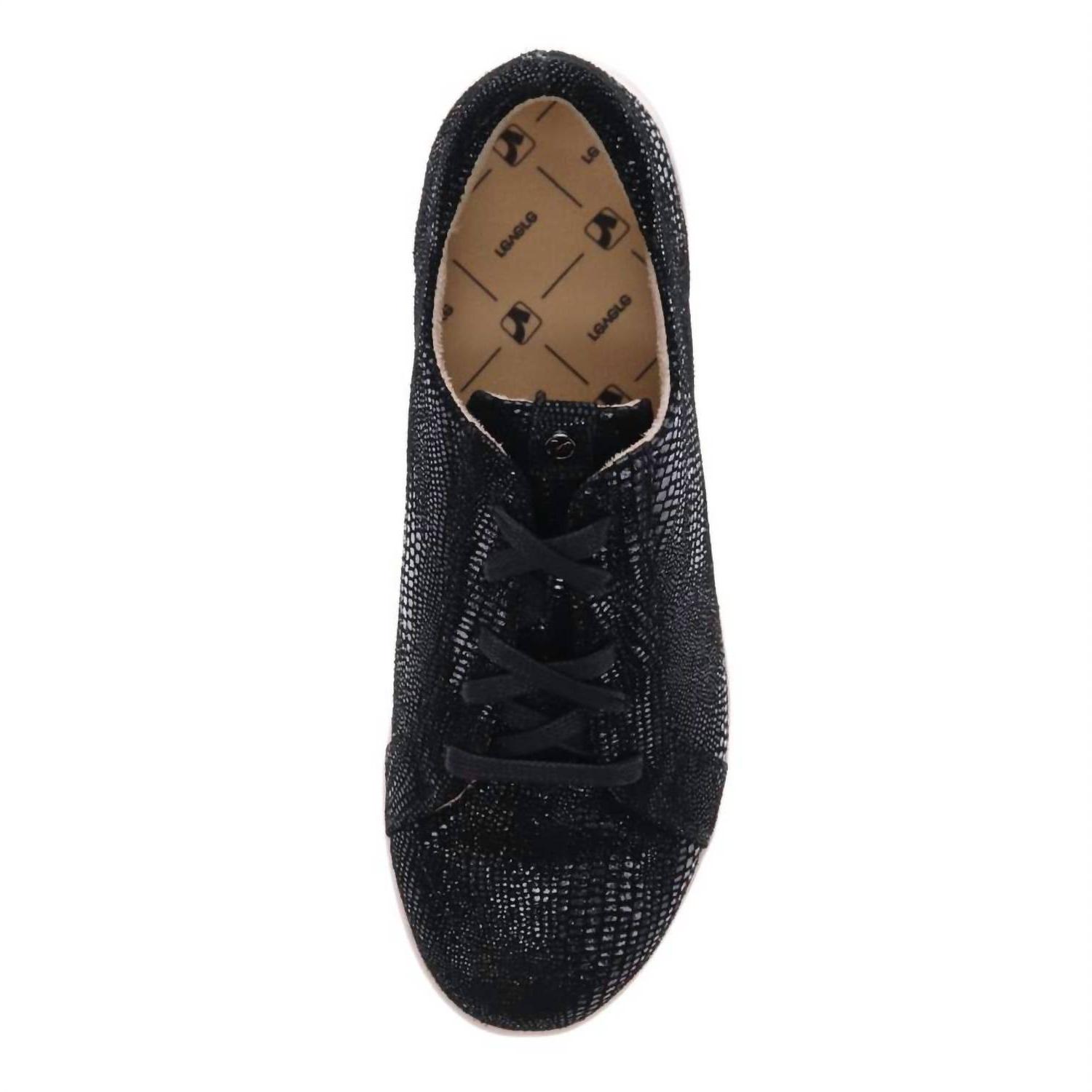 как выглядит Revere Womens Athens Lace-Up Sneaker Black Lizard фото