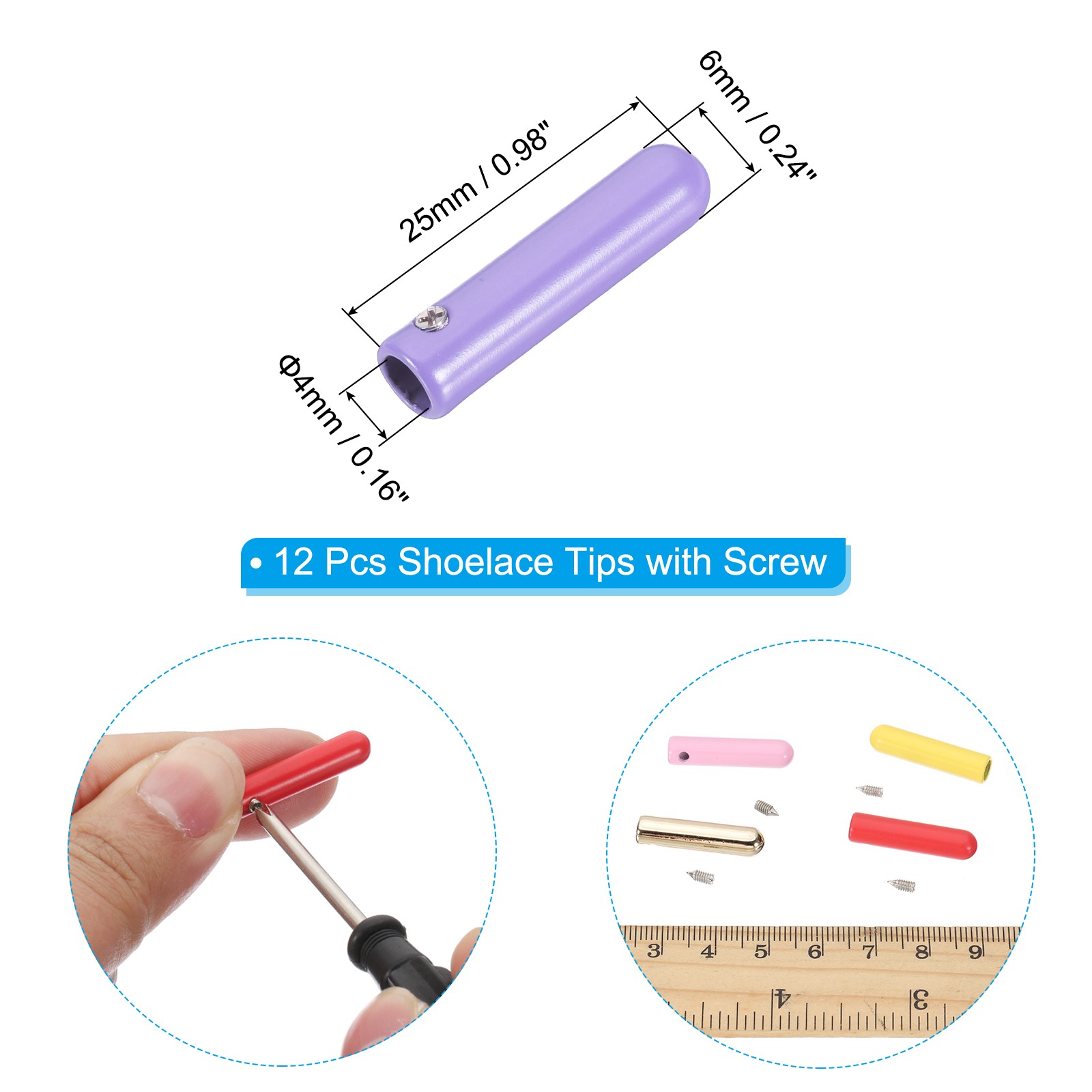 как выглядит 12 Pcs Shoelace Tips with Screw, Alloy 25mm Aglets End Tip for DIY, Light Purple фото