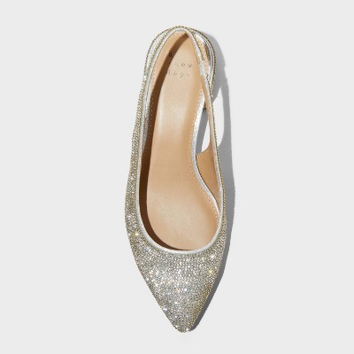 Women's Elle Rhinestone Slingback Pointed Toe Heels - A New Day Silver