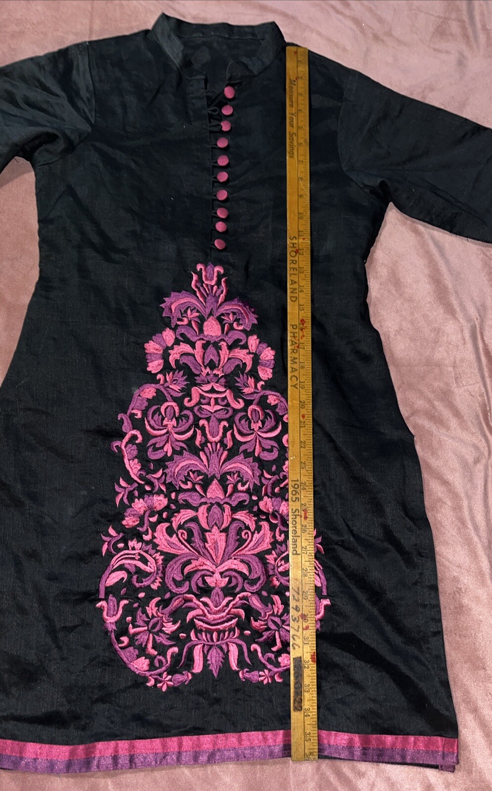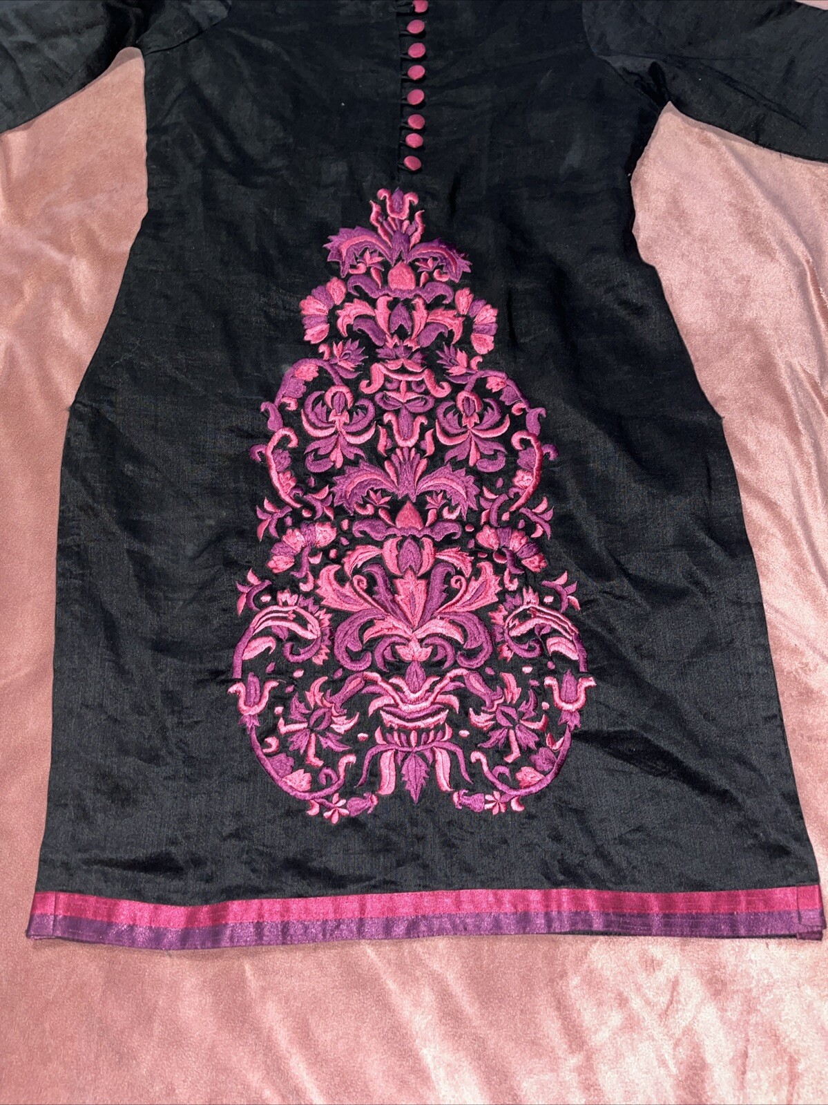 как выглядит Women s Indian Kurta Kurti Long No Size Listed See Measurements Black W/ Floral фото