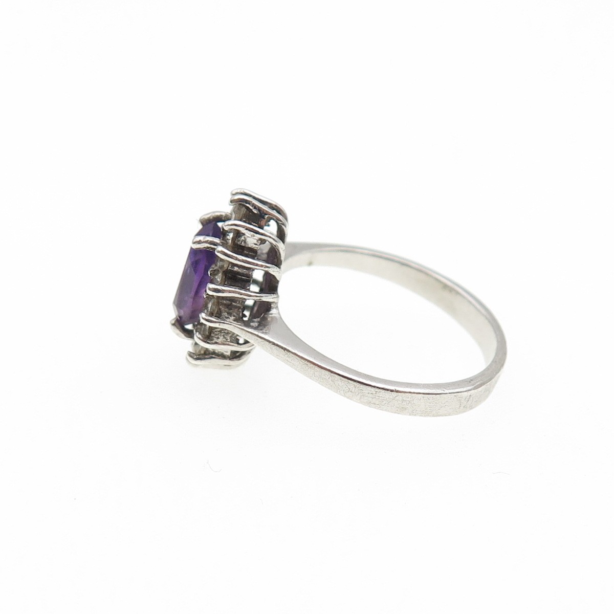 925 Sterling Silver Vintage Real Oval-Cut Amethyst Round-Cut C Z Ring Size 6