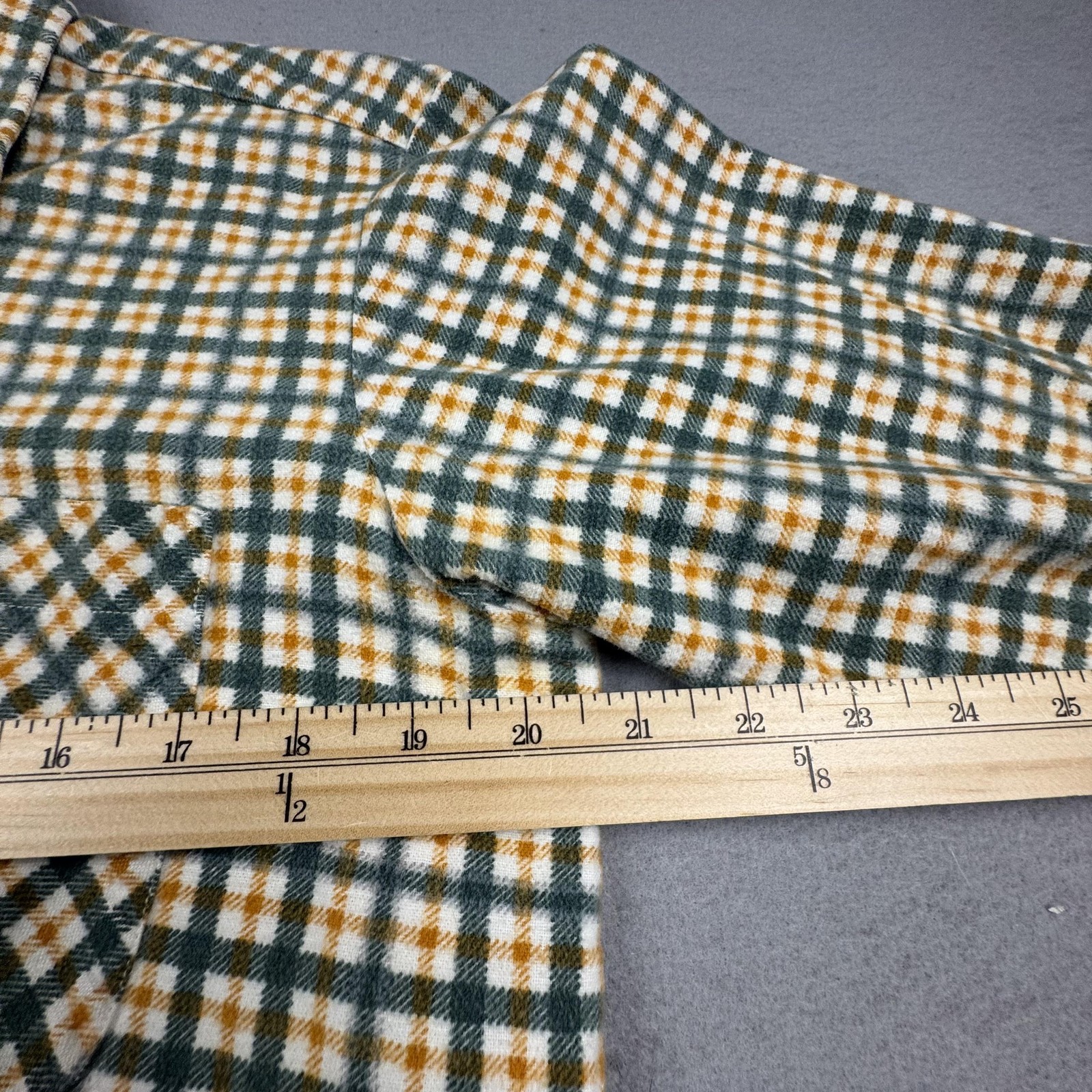 как выглядит Vintage JCPenney Fir Flannel Shirt Mens Green White Plaid Long Sleeve Button Up фото